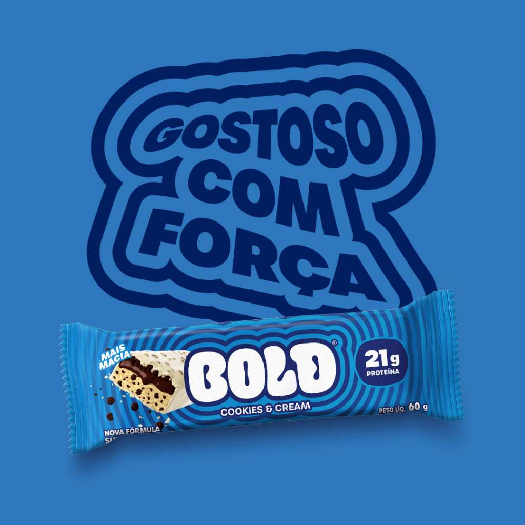 Barra de Proteína BOLD Cookies & Cream | 12 unidades de 60g | 21g de proteína por barra | Zero açúcar A BOLD Cookies & Cream oferece tudo o que você busca em um snack funcional. Cada barra contém 21 gramas de proteína, textura mais macia e um recheio cremoso com pedaços crocantes de cookies. É a escolha perfeita para quem deseja sabor de verdade com perfil nutricional inteligente. Ideal para consumir antes ou depois do treino, no trabalho, em viagens ou como lanche rápido entre refeições. Embalada individualmente, é prática e fácil de levar para qualquer lugar. Tudo isso sem adição de açúcares. Dica BOLD Coloque sua barra por 15 segundos no micro-ondas e descubra uma nova experiência de sabor e cremosidade. Compre com segurança na Loja Oficial e receba um produto original, com qualidade garantida.