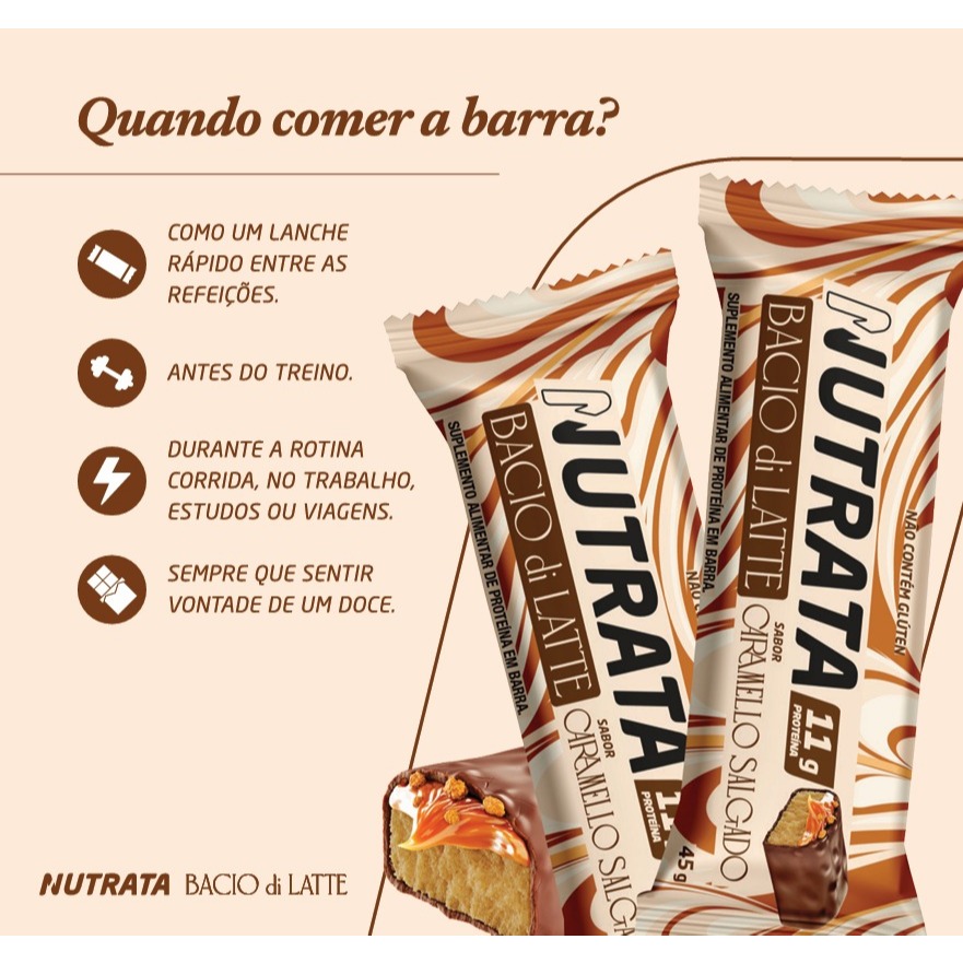 Lançamento Exclusivo 🍫🔥 Apresentamos o Display Barra de Proteína Nutrata x Bacio di Latte – Sabor Caramelo Salgado! Uma colaboração irresistível que une a excelência da Nutrata com o sabor inconfundível da Bacio di Latte. Cada display contém 12 unidades de 40g, perfeitas para quem busca nutrição, praticidade e sabor premium no dia a dia. Cada barra oferece 11g de proteína de alta qualidade, ajudando na recuperação muscular e saciedade, sem abrir mão do prazer de um doce delicioso. ✨ Destaques do produto: Colab exclusiva Nutrata + Bacio di Latte 11g de proteína por barra Textura cremosa com cobertura irresistível de caramelo salgado Sem adição de açúcar e com perfil nutricional equilibrado Ideal para o pré ou pós-treino, ou como um snack saudável 💪 Experimente o sabor que une performance e indulgência! O equilíbrio perfeito entre nutrição e prazer, agora em um formato prático e irresistível.