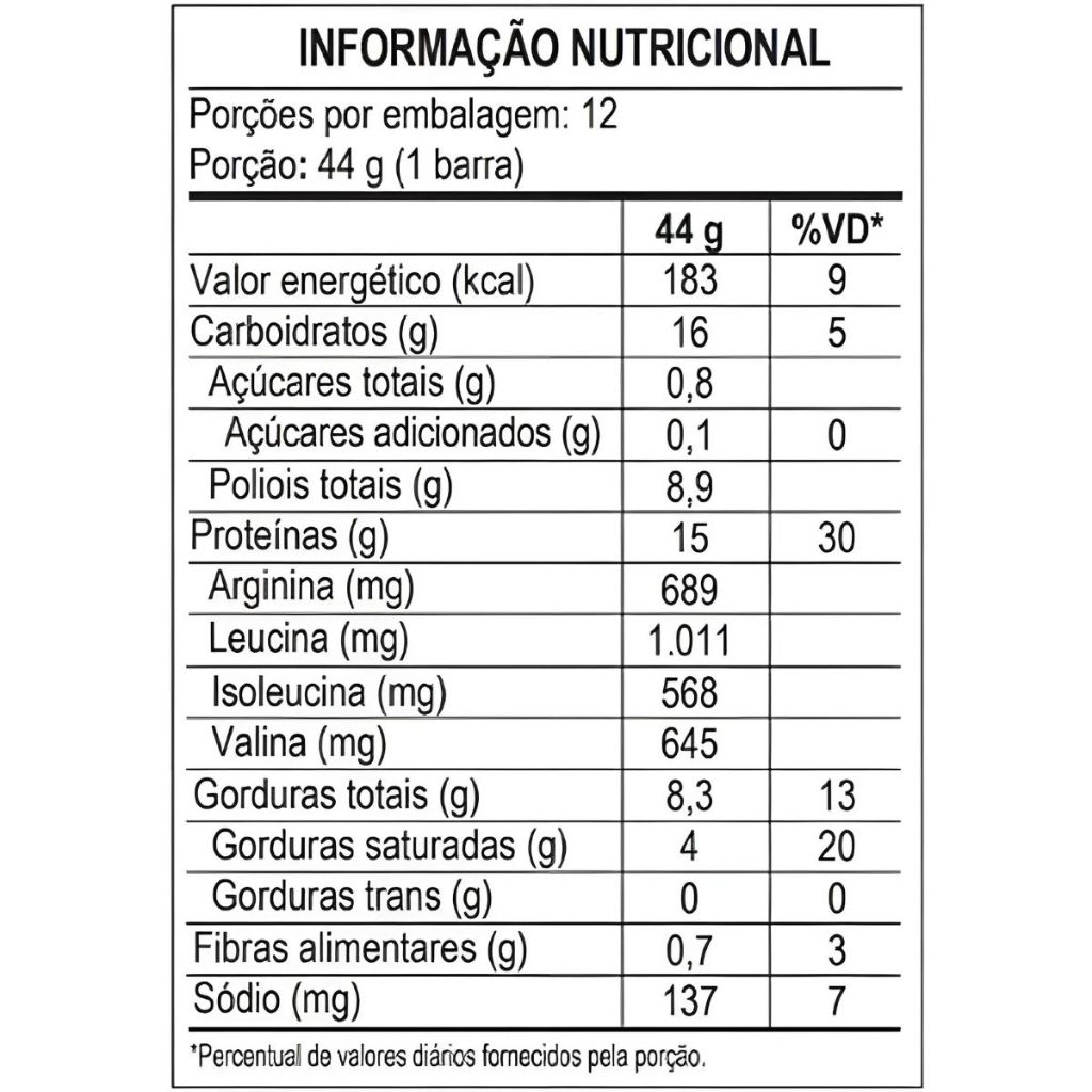 Barra de Proteína Max Titanium Power Protein Crisp Milk Caramel – 12 Unidades de 44g A Power Protein Crisp Milk Caramel da Max Titanium é a escolha ideal para quem busca um snack proteico saboroso e nutritivo. Combinando um delicioso sabor de caramelo cremoso com uma textura crocante, essa barra é perfeita para auxiliar na recuperação muscular e garantir energia ao longo do dia. Principais Características: - Alto teor proteico: Auxilia na construção e recuperação muscular. - Sabor irresistível de milk caramel: Perfeito para quem deseja um lanche doce sem comprometer a dieta. - Textura crocante e cremosa: Sensação agradável a cada mordida. Benefícios: - Contribui para o desenvolvimento e manutenção da massa muscular. - Ajuda a prolongar a saciedade entre as refeições. - Praticidade para consumo no dia a dia, seja no pré ou pós-treino. Diferenciais do Produto: - Proteína de alto valor biológico, fundamental para quem treina intensamente. - Combinação equilibrada entre nutrição e sabor. - Ótima alternativa para um lanche rápido e saudável. Especificações Técnicas: - Peso: 12 barras de 44g cada. Instruções de Uso: - Consumir uma barra entre as refeições ou conforme necessidade proteica diária. Ideal para pré ou pós-treino. Avisos e Precauções: - Este produto não substitui uma alimentação equilibrada. - Manter em local seco e fresco. - Contém derivados de leite e soja. Pode conter traços de amendoim e oleaginosas. O que está incluso? - 12 unidades da Barra de Proteína Max Titanium Power Protein Crisp Milk Caramel, 44g cada. ---- Dúvidas Frequentes ---- Os produtos são originais? Sim. Todos os nossos produtos são originais. Emitem nota fiscal? Sim. Emitimos nota fiscal para todos os pedidos.