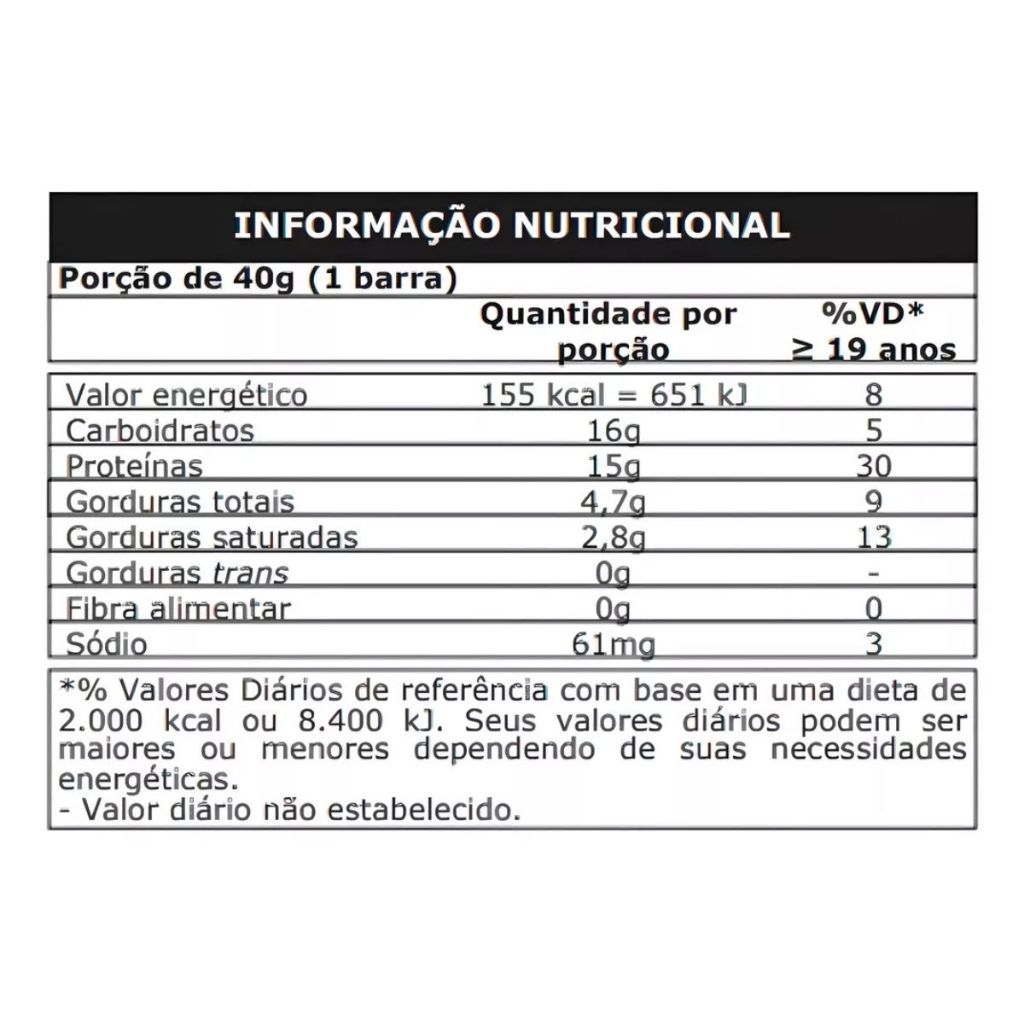 Barra de Proteína Probiótica Whey Bar Chocolate – Caixa com 24 Unidades de 40g Principais Características: - Fonte de proteínas de alta qualidade: Contém whey protein, essencial para a construção e recuperação muscular. - Sabor irresistível de chocolate: Ideal para quem busca um lanche proteico delicioso e nutritivo. - Praticidade e nutrição em qualquer momento: Perfeita para consumo antes ou depois do treino, ou como um snack saudável ao longo do dia. Benefícios: - Auxilia no crescimento e manutenção da massa muscular - Opção prática para quem tem uma rotina agitada - Fonte de energia para melhor desempenho físico - Alternativa saudável para reduzir a fome entre as refeições Diferenciais do Produto: - Elaborada com whey protein para máxima absorção - Sabor incrível sem abrir mão da qualidade nutricional - Equilíbrio perfeito entre proteínas e carboidratos Especificações Técnicas: - Peso: 24 unidades de 40g cada Instruções de Uso: - Consumir 1 barra ao dia ou conforme recomendação de um profissional de saúde. Ideal para ser utilizada como lanche proteico ou complemento alimentar. Avisos e Precauções: - Este produto não substitui uma alimentação equilibrada. - Pode conter derivados de leite, soja e oleaginosas. - Armazenar em local fresco e seco, protegido da umidade. O que está incluso? - 1 Caixa com 24 unidades de Barra de Proteína Probiótica Whey Bar Chocolate (40g cada) ---- DÚVIDAS FREQUENTES ---- Os produtos são originais? Sim. Todos os nossos produtos são originais. Emitem nota fiscal? Sim. Emitimos nota fiscal para todos os pedidos.