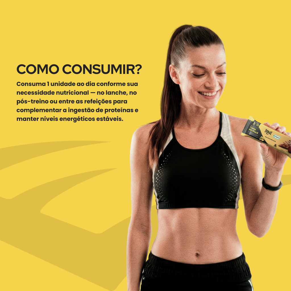 A Barra de Proteína com Creatina – Sabor Torta de Maçã é ideal para quem busca um snack saudável, prático e nutritivo. Produzida com matéria-prima importada e ingredientes selecionados, ela garante qualidade, sabor e desempenho em cada barra. Cada unidade contém 15g de proteínas, auxiliando na manutenção e ganho de massa muscular, além de 3g de creatina Creapure, que contribui para o aumento do desempenho físico e recuperação muscular. É perfeita para consumo pré ou pós-treino, ou como lanche saudável a qualquer hora do dia. Com apenas 188 kcal por barra, a Everlast é zero glúten, sem adição de açúcares e rica em fibras, vitaminas e minerais, proporcionando um aporte nutricional completo sem abrir mão do sabor. O sabor Torta de Maçã combina doçura e leve acidez, tornando a experiência ainda mais deliciosa. Principais Benefícios: 15g de proteínas por unidade 3g de creatina Creapure Zero glúten Sem adição de açúcares Baixa caloria: 188 kcal Rica em fibras (4,1g por barra) Fonte de vitaminas e minerais Ideal para lanches, pré ou pós-treino Conteúdo da Embalagem 01 unidade de Barra de Proteína com Creatina Peso líquido: 50g Informações do Produto: Categoria: Barra de proteína Sabor: Torta de Maçã Indústria Brasileira Produto alimentício dispensado de registro conforme RDC nº 240 de 26/07/2018 – ANVISA.