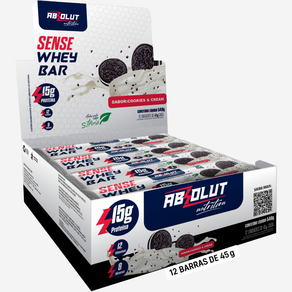 Barra De Proteína Sense Whey Bar Absolut Nutrition 15g Protéina Zero Açúcar Caixa 12 Unidades