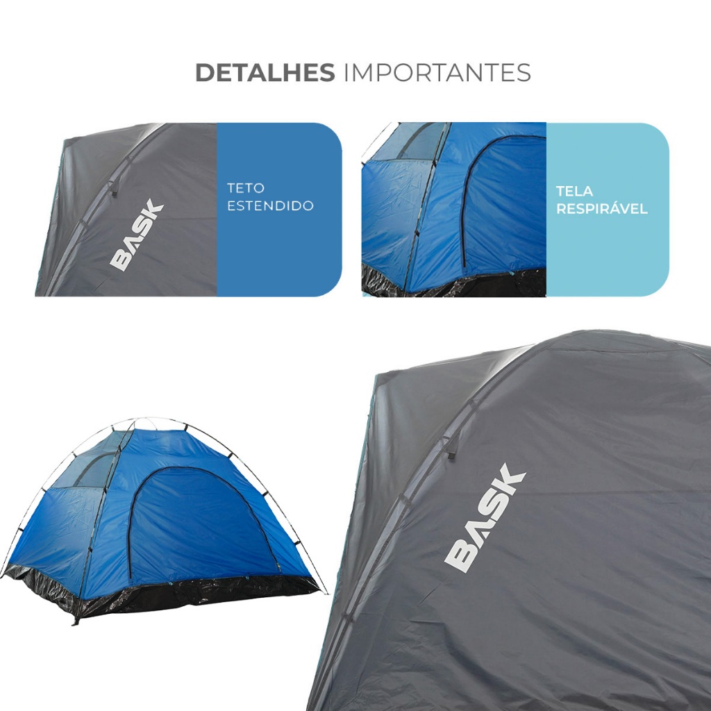 Barraca Camping 4 Pessoas À Prova D'água PU1500mm Tela Mosqueteira Camada Dupla Bask