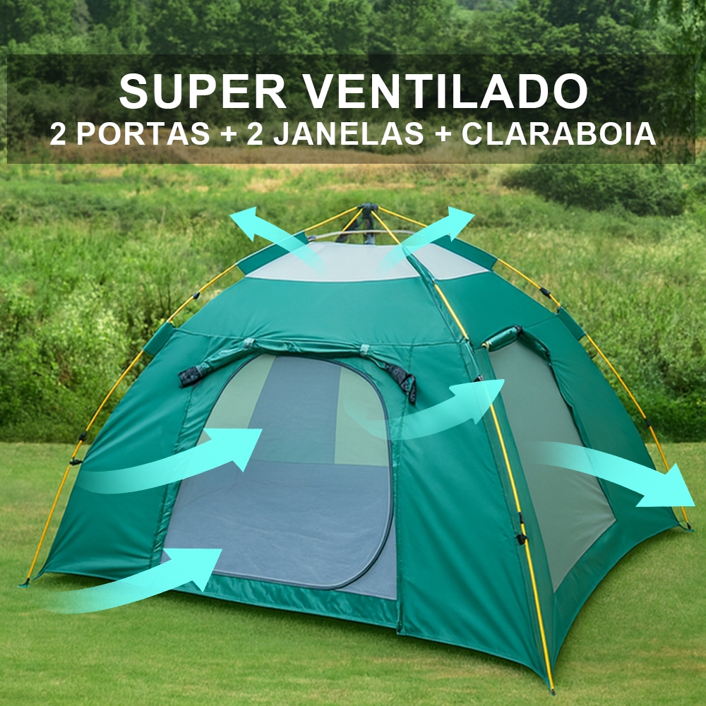 FÁCIL MONTAGEM: Design de estrutura automática, a barraca se monta em 60 segundos, mesmo para quem não tem experiência, e também é fácil de embalar na bolsa de transporte. ÓTIMA VENTILAÇÃO: Essa barraca foi projetada com duas janelas grandes, duas portas grandes e janelas de tela na parte superior da barraca, para que você tenha uma ótima ventilação. BARRACA DE CAMPING GRANDE E PORTÁTIL PARA 3 PESSOAS: dimensão da barraca: 215 x 215 x 145 cm, com espaço suficiente para 3 pessoas se sentarem confortavelmente na barraca. BARRACA APROVA D’ AGUA: Feita de materiais impermeáveis de alta qualidade com hastes resistentes que podem suportar diferentes climas. A estrutura robusta e a cobertura à prova d'água garantem que você fique protegido da chuva ou do vento. TENDA PARA TODOS OS TEMPOS DE BOA QUALIDADE: A barraca é feita de poliéster 210T anti-uv com UPF50+, que ajuda a bloquear os raios UV prejudiciais nos dias de verão. Ótimo desempenho à prova d'água: PU1000mm, com todas as costuras seladas. O suporte forte e a haste de perfuração de vidro elasticamente retrátil tornam toda a barraca mais estável. Garantia do vendedor: 90 dias