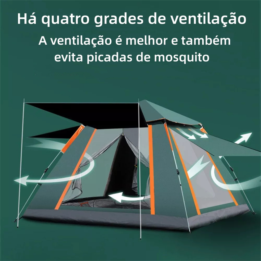 O espaco desafogado: A porta com 2 varinhas metalicas, e um bom local para comer e organizar as festas. O maior espaco (240*240*154cm)(Tamanho Externo) pode caber 6 adultos a sentar-se ou 4 pessoa a dormir. Esticada rapidamente: Com o sistema de suporte pre-montado, pode estica-la e encaixota-la mais rapidamente sem ajudas. RESPIRAVEL E CONFORTAVEL: As portas frontal e traseira para facilitar a entrada, a malha B3 pode manter os insetos mordedores afastados e garantir que a tenda seja ventilada e fria. A parte externa e feita de poliester 190T com revestimento de PU a prova d'agua, avaliado em 2000mm. E UPF 50+, perfeito para protecao contra o sol. FIRME E DURAVEL: Com 6 cordas e 10 pregos de aco, a tenda pode ficar firmemente no chao, torna a tenda forte o suficiente para resistir mesmo com ventos fortes. Os bolsos internos sao usados para armazenar telefone celular e outros objetos pequenos. Voce pode pendurar uma lampada do acampamento ou uma lanterna no topo da tenda. Tecido exterior: pano de prata revestido de protetor solar 210T Suporte da tenda: haste de fibra de vidro totalmente automatica Peso do produto: 4.25kg Tamanho expandido: 240 * 240 * 154cm (comprimento, largura, altura) Tamanho da embalagem: comprimento 85cm, diametro 18cm Classificacao a prova d'agua: 2000mm (adequado apenas para chuva moderada e leve) Nivel de protecao solar: UPF 50+ Capacidade: 4-5 pessoas Cor do produto: verde escuro Caracteristicas: Versao aumentada, adequada para passeios da familia Embalagem: Tenda * 1 Saco de encaixotamento * 1 Tampa superior a prova de chuva * 1 Corda a prova de vento * 6 Prego a terra * 10 ---------------------------------------------------------------------------------------------------------------------- Quem somos nós A natureza nos inspira por montanha majestosa e lago silencioso, rio enfurecido e mar misterioso. Conquistar a natureza é um jogo para os corajosos, e nós fornecemos equipamentos profissionais aos entusiastas do ar livre. Acredita que podemos alcançar seus objetivos. Compartilhamos cenários e momentos felizes, trocamos as experiências e tornamos parceiros próximos. Somos alpinistas, campistas, caminhantes, entusiastas da pesca, somos JOYFOX Sonho Espalhamos o que nos move e forneçamos o equipamento necessário para conquistar a natureza. Queriamos todos sintam a paixão nas montanhas, desfrutem da tranquilidade na bela grama e gozam a brisa do mar na praia branca. Nosso sonho é deixar que mais entusiastas do ar livre se apaixonem pela natureza e se confiam pelo JOYFOX. Fundada no Brasil, a JOYFOX vende excelentes equipamentos de todo o mundo.