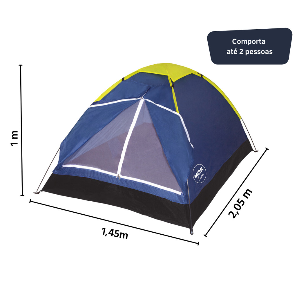 Barraca Camping Iglu para 2 Pessoas Azul - Mor A Barraca Iglu da Mor é confeccionada em poliéster e a costura entre o piso e o dormitório é invertida, evitando vazamentos de água para o interior da barraca. Com sua estrutura em varetas de fibra de vidro interligadas, facilitando na montagem e desmontagem. O piso é confeccionado em polietileno (ráfia) reforçado. Além disso, elas possuem sacola de nylon para transporte, mosquiteiro na porta e no teto, local para pendurar lanterna dentro da barraca e proteção contra vazamentos! Suporta até 2 pessoas e é ideal para acampamentos e praias. Principais Características: - Estrutura da Vareta em Fibra de Vidro Interligadas - Costura reforçada, evitando vazamento de água para o interior da barraca - Piso reforçado evitando vazamento de água - FPS 100 - Mosquiteiro na porta e no teto - Sacola de nylon para transportar a barraca - Local para pendurar a lanterna na parte interior - Proteção contra vazamento - Montagem sem uso de ferramentas - Fácil de Montar e Desmontar - Cor: Predominante Azul Especificações Técnicas: - Conteúdo da Embalagem: 1 Barraca, 1 Sacola de Transporte + Manual de Instruções - Composição/material: Poliéster, Polietileno, Fibra de Vidro - Capacidade: 2 pessoas - Dimensão Aberta: (LxCxH) 2,05 x 1,45 x 1,00 cm Aprox. - Peso: 2,0 Kgs - Garantia: 30 Dias (Contra Defeitos de Fabricação pelo Fabricante) - Referência do Fabricante: 409033 - Código EAN: 7898706990106 - Marca: Mor Imagens meramente ilustrativas, cores e estampas podem variar de acordo com o lote do fabricante.