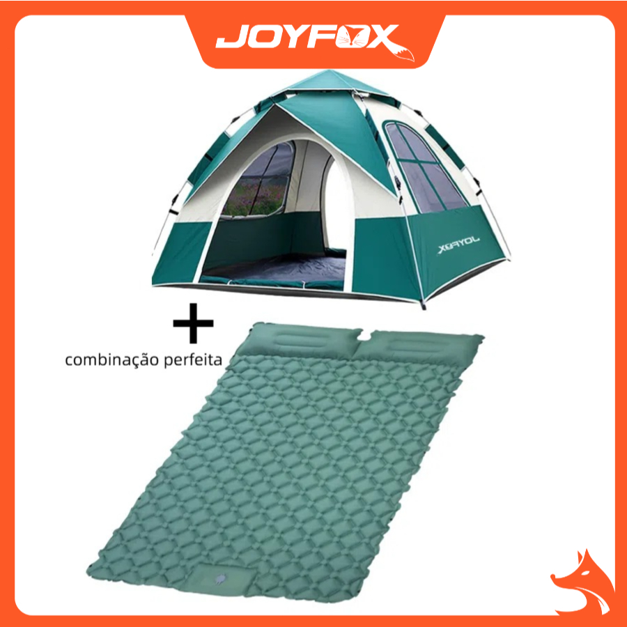 Tamanho da tenda:210*200*135CM Tamanho do colchão:190*123*5CM Recebe uma tenda para 4-5 pessoas e um colchão. Com este colchão e a tenda, é possível sentir a suavidade, é uma combinação perfeita! O colchão é fácil de guardar, pode ser facilmente enchido de ar pisando-o com o pé e é suficientemente pequeno para ser guardado sem ocupar espaço extra. A tenda tem 2 janelas para uma melhor ventilação, pode colocar o colchão na tenda e deitar-se em cima, o fundo da tenda torna-se macio