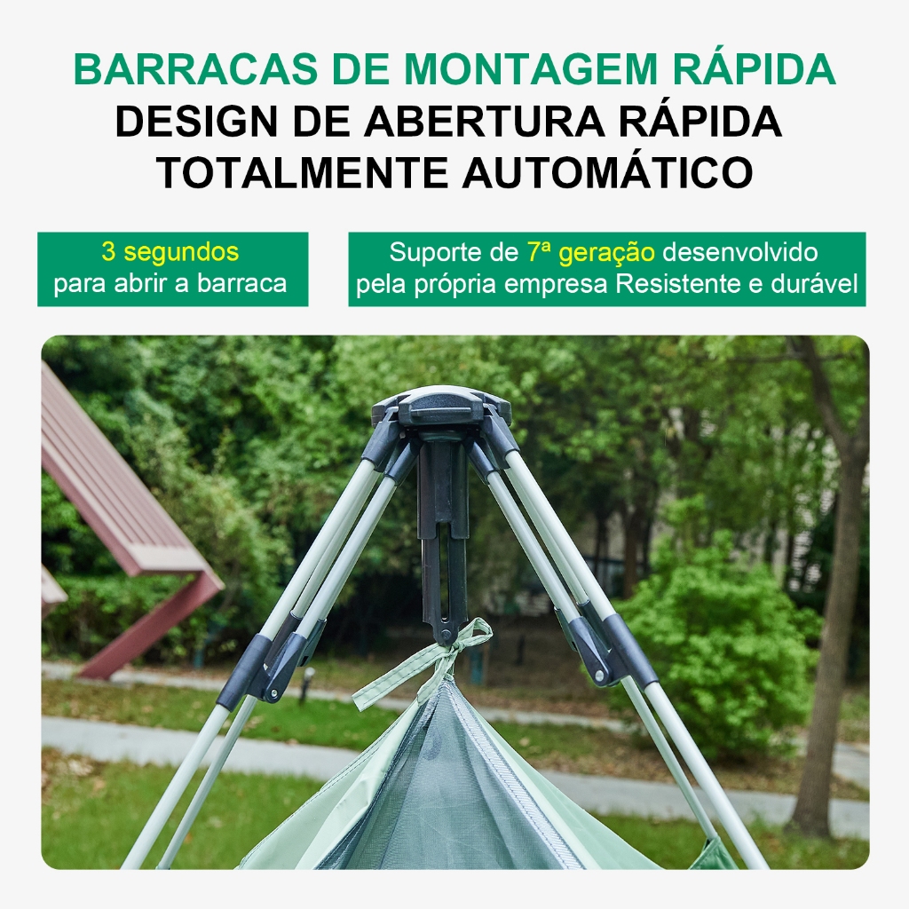 Arremesso rápido e fácil em 3 segundos O mecanismo instantâneo da barraca pop-up permite que você arme a barraca de trekking em menos de 3 segundos. Basta levantar a parte superior da Barraca, abaixar o mecanismo superior, encaixar as costuras inferiores no lugar e uma pessoa poderá montá-la facilmente. Fácil de montar e dobrar para economizar tempo. Vem com cavilhas e cordas fixas no chão para maior estabilidade contra o vento. 2 PORTAS 2 JANELAS As janelas laterais esquerda e direita e as portas duplas são equipadas com mosquiteiros embutidos com zíper e camadas externas de náilon com zíper, facilitando a alternância entre alta respirabilidade e total privacidade. Com as janelas de malha abertas, você pode admirar o céu e o ambiente fora da Barraca e desfrutar de muita ventilação sem se preocupar com a infestação de mosquitos. Os zíperes de segurança de ponta dupla de alta qualidade permitem uma vedação firme, proporcionando excelente proteção contra o vento e privacidade. Proteção solar e contra raios UV UPF100+ Cada Barraca é feita de material de poliéster leve, respirável e à prova de chuva com gel de prata PU, que filtra os raios UV e proporciona boa iluminação, perfeita para tirar fotos. O material de gel de prata PU reflete muitos raios UV nos meses quentes de verão, diminuindo a temperatura ambiente e criando um bom ambiente para dormir. Ele oferece proteção excepcional e remove facilmente os raios UVA quando exposta aos raios UV, protegendo sua pele. PU2000MM IMPERMEÁVEL A parte superior da Barraca é feita de tecido impermeável emborrachado PU prateado e costuras seladas a quente. Com as propriedades à prova d'água do PU2000MM, não haverá vazamentos ou infiltrações quando usada durante chuvas leves a moderadas. A parte inferior da Barraca é feita de tecido Oxford 210D, que é resistente ao desgaste (a parte inferior da Barraca não é à prova d'água, recomenda-se usá-la com um tapete à prova de umidade ou uma cama inflável). Acessórios necessários em um só lugar Equipamos você com 8 estacas de solo, 6 cordas, capa de chuva, bolsa de transporte e suporte para foyer. Projetado para proporcionar uma experiência confortável em sua aventura ao ar livre. ---------------- Especificações: ---------------- Pequeno: Capacidade de dormir: 3-4 pessoas Tamanho: 215x215x145cm Material: tecido Oxford 210t, malha B3 Suporte: tecido Oxford 210t Índice de proteção solar: UPF 100+, revestimento de proteção solar Classificação de impermeabilidade: tecido impermeável de 2000 mm Portas: 2 portas com zíper duplo e tela mosquiteira Janelas: 2 janelas com zíper duplo e mosquiteiro Tamanho da embalagem: 78*16*16cm Peso da embalagem: 4,5 kg Grande: Capacidade de dormir: 5-8 pessoas Tamanho: 240x240x150cm Material: tecido Oxford 210t, malha B3 Suporte: tecido Oxford 210t Índice de proteção solar: UPF 100+, revestimento de proteção solar Classificação de impermeabilidade: tecido impermeável de 2000 mm Portas: 2 portas com zíper duplo e tela mosquiteira Janelas: 2 janelas com zíper duplo e mosquiteiro Tamanho da embalagem: 88*18*18cm Peso da embalagem: 4,7 kg ---------------- O pacote inclui: ---------------- 1 x Barraca Automática 8x Cavilhas de Solo Estendidas 6 x Corda de Vento 1 x Capa de Chuva 1 x Bolsa de Armazenamento 2 x Suporte de Foyer
