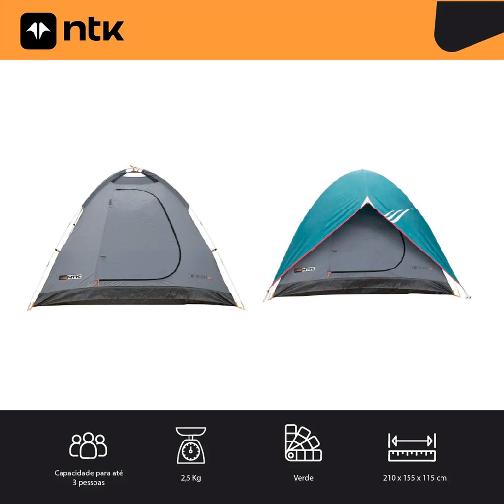 # Auto Equip # Seja bem-vindo(a)!!! --- Descrição: Barraca de Camping Cherokee GT 3 Pessoas Poliéster - NTK Conteúdo da Embalagem: - 01 Barraca de Camping Cherokee GT 3 Pessoas Poliéster - NTK Transforme sua experiência de acampamento com a Barraca de Camping Cherokee GT da NTK. Compacta e eficiente, oferece proteção superior contra chuvas, estabilidade em diversas condições climáticas e conforto para até 3 pessoas. - Proteção Superior: Sobreteto com coluna d'água de 2500 mm, costuras seladas e proteção UV para maior durabilidade e segurança. - Ventilação Eficiente: Tecido respirável com mosquiteiro em poliéster para garantir conforto e proteção contra insetos. - Design Funcional: Estrutura tipo iglu com montagem prática e materiais resistentes, ideal para aventuras ao ar livre. - Compacta e Leve: Pesando apenas 2,5 kg, é fácil de transportar e montar em qualquer lugar. - Durabilidade Garantida: Piso em polietileno de alta densidade e varetas de fibra de vidro proporcionam estabilidade e longa vida útil. Por que escolher a Barraca Cherokee GT NTK? A Barraca Cherokee GT da NTK combina durabilidade, leveza e praticidade, tornando-se a escolha perfeita para pequenos grupos que buscam conforto e proteção em suas aventuras ao ar livre. Ideal para acampamentos em climas variados, ela é compacta e fácil de transportar. Ficha Técnica - Nome da marca: NTK - Tipo do produto: Barraca de camping - Modelo/Linha: Cherokee GT - Medidas: 1,55 x 2,10 x 1,15m - Material: Sobreteto 100% poliéster impermeabilizado, piso em polietileno de alta densidade, tela em poliéster - Garantia: 6 meses - Intensidade: Coluna d'água de 2500 mm - Suporta: Até 3 pessoas - Peso: 2,5 kg - Limpeza: Limpar com pano úmido e sabão neutro; evitar produtos abrasivos - Contexto de uso ideal: Acampamentos em climas variados Experimente a Barraca Cherokee GT NTK – Proteção, conforto e durabilidade em todas as aventuras! Importante - Garantia de 06 meses; - Pedidos aprovados até 12h00 de segunda a sexta será enviada no mesmo dia; - Enviamos em até 24h úteis; - A embalagem pode variar de acordo com o estoque do fabricante; - Imagens meramente ilustrativas; - A cor do produto pode variar de acordo com a tela do seu smartphone ou computador; - Utilize o campo de "Perguntas e respostas" e esclareça suas dúvidas com nosso suporte técnico. - Todas as informações divulgadas são de responsabilidade do Fabricante/Fornecedor