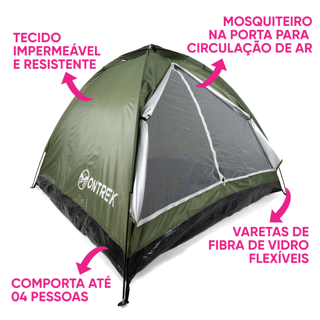 BARRACA TIPO IGLU PARA 4 PESSOAS COM BAG COMPACTA ONTREK A Barraca Tipo Iglu Ontrek é a escolha perfeita para quem busca praticidade, conforto e proteção em suas aventuras ao ar livre. Com capacidade para 4 pessoas, ela oferece espaço suficiente para um acampamento tranquilo, sem perder a versatilidade e o design compacto.Estrutura resistente e fácil de montar, garantindo estabilidade mesmo em condições de vento moderado. ESPECIFICAÇÕES: • Marca : Ontrek; • Modelo: MC981; • Cores: Verde ou Azul; • Design Iglu; • Capacidade para 4 pessoas; • Material: Poliéster; • UPF 30 • Varetas De Fibra de vidro • PA 300MM • 4 estacas para fixação; • Com bag de trasnporte; • Compacta e Leve; DIMENSÕES: •AxLxC: 128x198x198cm IMPORTANTE: • Garantia de 3 meses. + COLCHÃO INFLÁVEL DE CASAL MULTIUSO COM FOLE ONTREK Descanso e versatilidade para o seu dia a dia! O Colchão de Casal Multiuso com Fole Ontrek é a escolha perfeita para quem busca conforto e praticidade. Com um design inovador e materiais de alta qualidade, ele se adapta a diferentes necessidades, oferecendo um excelente suporte para o seu descanso. Transforme seu espaço com o colchão que une funcionalidade e conforto! Ideal para quartos, dormitórios de hóspedes ou até mesmo para acampamentos. ESPECIFICAÇÕES: • Marca : Ontrek; • Modelo: MC980; • Versátil e prático; • Tecnologia de fole; • Material: PVC (mais espesso) / Vinil (resistente); • Peso máximo: 200KG • Face superior aveludada; • Inflador rápido com mola; • Kit de reparo incluso; • Válvula para encher e esvaziar; DIMENSÕES: •AxLxC: 25x137x191cm IMPORTANTE: • Garantia de 3 meses. CONTEÚDO DA EMBALAGEM: • 1 Barraca; • 1 Bag de transporte; • 1 Manual de instruções; • 1 Colchão inflável de casal com fole; • 1 Kit reparo; • 1 Manual de instruções; *Todos os Direitos Reservados Em caso de cópia dessa descrição e fotos, os responsáveis serão cobrados de acordo com a Lei (9.610/98) de Diretos Autorais.*