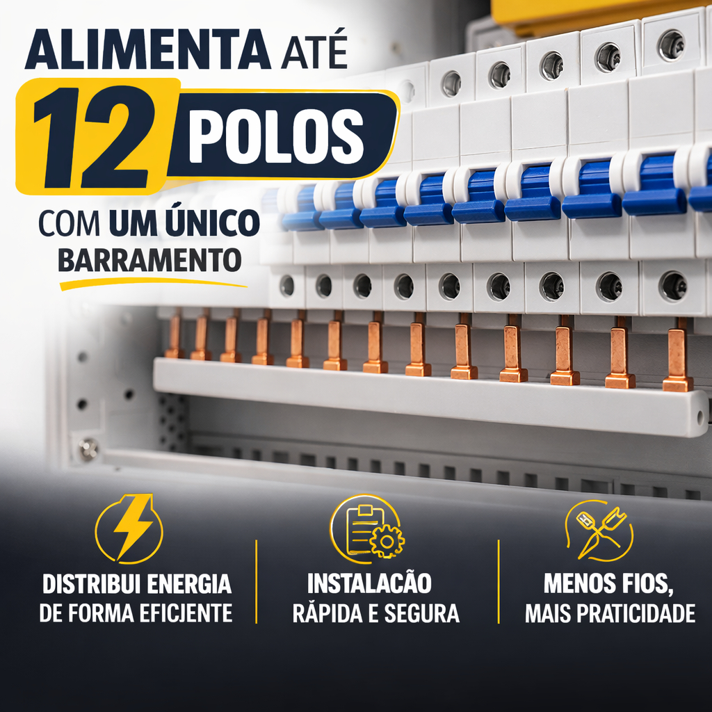 Barramento Pente 12 Polos Bifásico 63a 110 E 220V 21cm