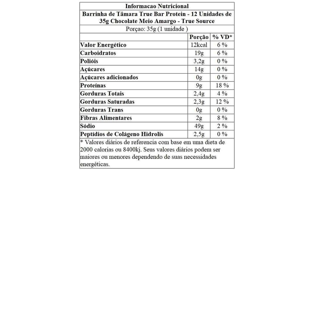 Barrinha de Tâmara True Bar Protein - 12 Unidades de 35g Chocolate Meio Amargo - True Source