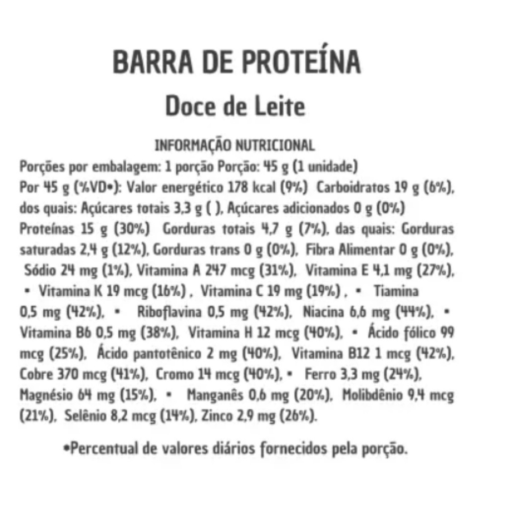 Sobre o produto: A Sense Whey Bar é uma barra de proteína desenvolvida para quem busca praticidade, nutrição e sabor em um único produto. Com uma fórmula equilibrada e de alta qualidade, cada barra contém 15g de proteína, fornecendo um suporte essencial para a recuperação muscular e o aporte proteico diário.Além disso, a Sense Whey Bar é enriquecida com 13 vitaminas e 11 minerais, auxiliando no funcionamento do metabolismo e na manutenção da saúde. Seu diferencial está na utilização de Stevia como adoçante, proporcionando uma experiência mais saudável sem comprometer o sabor.Disponível em diversos sabores irresistíveis, a Sense Whey Bar é ideal para quem deseja um lanche nutritivo e saboroso em qualquer momento do dia. Como consumir - Lanches intermediários entre as refeições - Pré-treino, para fornecer energia - Pós-treino, auxiliando na recuperação muscular - Substituição de lanches menos nutritivos ao longo do dia Benefícios - 15g de proteína por barra, auxiliando na recuperação e manutenção muscular - Enriquecida com 13 vitaminas e 11 minerais essenciais - Adoçada com Stevia, oferecendo um sabor agradável sem adição de açúcares refinados - Praticidade e conveniência para qualquer momento do dia - Disponível em diversos sabores para agradar diferentes paladares Alergênicos: Contém derivados de leite e soja.Pode conter traços de amendoim, castanhas e ovo Ingredientes: Proteína do soro do leite (Whey Protein).Mistura de vitaminas e minerais.Adoçante natural Stevia.Ingredientes específicos para cada sabor, como cacau, pasta de amendoim, coco e morango Advertências - Este produto não deve substituir uma alimentação equilibrada e saudável - Consulte um profissional de saúde antes de consumir em caso de condições médicas específicas - Manter em local seco e fresco, protegido da luz e umidade Conclusão: A Sense Whey Bar – Absolut Nutrition é a escolha perfeita para quem busca uma barra de proteína completa, saborosa e nutritiva. Com 15g de proteína, 13 vitaminas e 11 minerais, ela oferece suporte nutricional essencial para atletas, praticantes de atividades físicas e qualquer pessoa que deseje uma opção saudável para o dia a dia. Seu sabor diferenciado e a praticidade fazem dela uma excelente alternativa para quem não abre mão da qualidade na alimentação.