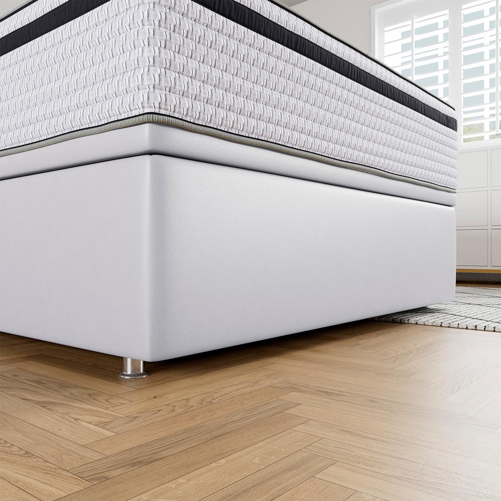 Base Baú Physical Corino Branco Casal (138x188x39) As Bases Baú Physical Corino Ortobom unem funcionalidade e design moderno, criando a combinação perfeita com o seu colchão e com a decoração do ambiente. Seu visual contemporâneo agrega sofisticação e praticidade ao quarto. O espaço interno do baú oferece uma solução inteligente para armazenamento, ajudando a manter o quarto organizado e aproveitando melhor o ambiente. Produzida com madeira 100% de reflorestamento, reforçando o compromisso da Ortobom com a sustentabilidade e o uso responsável dos recursos naturais, além de espuma de poliuretano, que garante toque agradável, firmeza e durabilidade prolongada. Possui 42,5 cm de altura total — sendo 39 cm da base e 3,5 cm dos pés — oferecendo suporte seguro para o colchão. Seu suporte é de até 150 kg por pessoa (além do peso do colchão). A base baú conta com pistões de amortecimento, alça de sustentação e kit de pés em PVC, que permitem abertura estável, segura e sem esforço. Com design elegante, a Base Baú Physical Ortobom é a solução ideal para quem busca conforto, praticidade e espaço em um único produto.