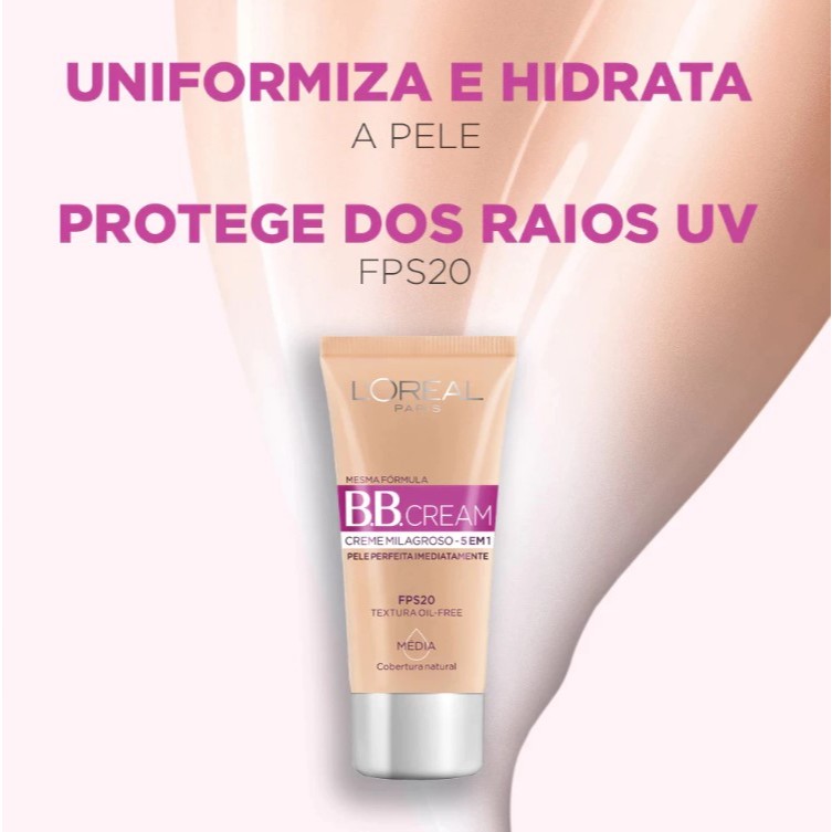 Base BB Cream 5 em 1 Cor Média 4.0 FPS 20 L'Oréal Paris 30ml