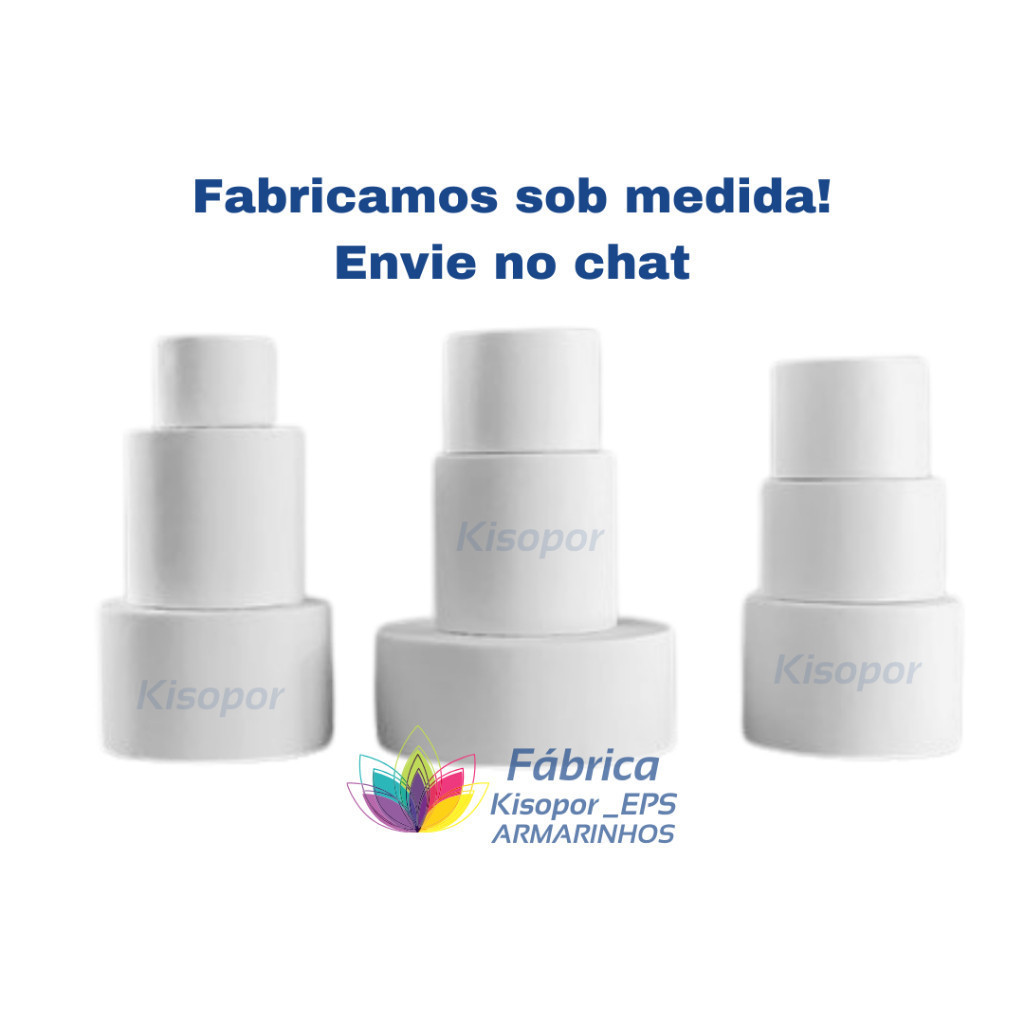 Kit bolo fake 5 andares FABRICA KISOEPS SUZANO O kit é composto por: - 1 base redondo com 15 cm de largura x 15 cm de altura - 1 base redondo com 20 cm de largura x 15 cm de altura - 1 base redondo com 25 cm de largura x 15 cm de altura - 1 base redondo com 30 cm de largura x 15 cm de altura - 1 base redondo com 35 cm de largura x 15 cm de altura CARACTERISTICAS: - Base para bolo fake KISOEPS SUZANO com 5 andares de 15cm. - Altura total do kit 75cm. - Material: EPS Maciço T2 - Densidade T2: Mais Liso e melhor acabado, sem aspecto de catapora e recorte impecável. - Mais denso e de excelente qualidade, não fica esfarelando. - Podem ser pintados com qualquer tinta, desde que seja a base d'água. Bolo Fake de Isopor Kisoeps Suzano: 5 Andares para Celebrações Inesquecíveis! Crie a decoração dos seus sonhos com o Bolo Fake de Isopor Kisoeps Suzano! Perfeito para casamentos, aniversários, chás de bebê, formaturas e qualquer evento que mereça um toque especial, este bolo decorativo oferece a base ideal para sua criatividade. Nosso bolo fake é composto por 5 andares de alta qualidade, com diâmetros estrategicamente pensados para uma montagem imponente: 15cm, 20cm, 25cm, 30cm e 35cm de largura (diâmetro), todos com 15cm de altura cada. Fabricado com EPS (isopor) de excelente qualidade e recorte impecável, garantimos peças maciças em EPS. Isso significa que você terá uma estrutura robusta, lisa e perfeita para ser decorada com pasta americana, biscuit, EVA, tecido ou qualquer material que sua imaginação permitir. (utilize sempre produtos a base d'água) Por que escolher o EPS da Kisoeps Suzano? Estrutura Premium: EPS de alta qualidade e densidade perfeita para maior durabilidade. Recorte Impecável: Recorte perfeito que facilita a decoração. Versatilidade: Ideal para diversas ocasiões e estilos de decoração. Facilidade: Leve e fácil de manusear e decorar. Qualidade Garantida: Feito por quem entende de EPS em Suzano. Garanta um destaque visual para sua festa com o Bolo Fake de Isopor Kisoeps Suzano. ATENÇÃO, somos fabricantes, e nosso EPS (isopor®) é 100% reciclável e reaproveitável. - Não contém CFC. - Não contamina o solo, ar e água. - É atóxico e inodor. Fatores importantes quando se trata de Artigos de festas, decoração e principalmente artigos de cozinha. Com as bases da KisoEps Suzano você pode: - Pintar - Colar - Fixar - Lixar - Furar Use e abuse da sua imaginação! Disponibilizamos a maior variedade de tamanhos e você certamente encontrará o tamanho perfeito para todas as suas necessidades. Temos no varejo, atacado, e avulsas. Não encontrou o tamanho ou kit desejado? Envie uma msg no chat solicitando para o time KisoEps Suzano. Enviamos os produtos com rapidez, qualidade e segurança. A pronta entrega, envio imediato em até 24 horas Uteis. Atenção: A cor do produto pode variar de acordo com as configurações do seu monitor Qualquer dúvida podem nos enviar via chat. Time KisoEps Suzano