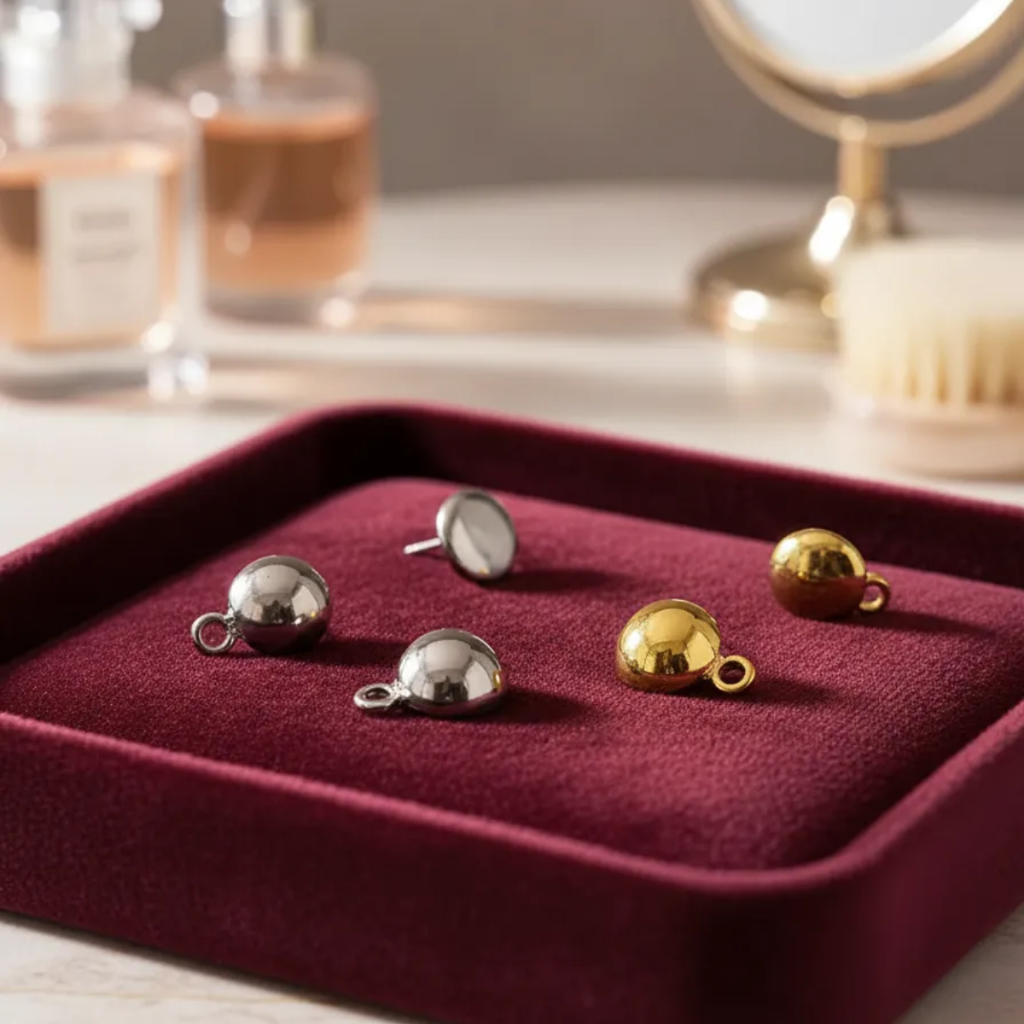 Base Brinco Meia Bola - Prata e Dourado - 6mm Com 1 Saída Kit com 100 peças