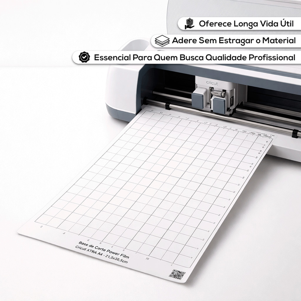 Base de Corte A4 Com Cola - Power Film - Compatível Cricut Joy Xtra ENVIO RÁPIDO + PRODUTO DE QUALIDADE PROFISSIONAL A Base de Corte Power Film para Cricut Joy Xtra foi desenvolvida para garantir fixação segura dos materiais e cortes mais precisos, tornando seus projetos muito mais fáceis e profissionais. Produzida em poliéster cristal de alta qualidade com 250 microns de espessura, oferece excelente durabilidade e aderência equilibrada, permitindo que os materiais permaneçam firmes durante o corte e sejam removidos com facilidade após o uso. A cola especial à base de água proporciona a aderência ideal para diversos tipos de materiais leves e médios, evitando que o material deslize durante o corte e ajudando a preservar a lâmina da máquina. Características do Produto: -Quantidade: 1 Base de Corte -Tamanho: A4 -Espessura: 250 microns -Cor: Translúcida -Material: Poliéster cristal com adesivo reposicionável -Compatibilidade: Cricut Joy Xtra