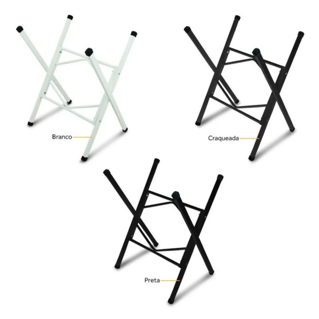 Base de Mesa em Aço Reforçado – Modelo X | Alta Resistência e Estabilidade A Base de Mesa em Aço Reforçado Modelo X é a escolha ideal para quem busca durabilidade, estabilidade e design moderno. Fabricada em aço de alta qualidade, ela oferece excelente sustentação para tampos de madeira, MDF, vidro ou pedra, sendo perfeita para mesas de jantar, cozinha, escritório, área gourmet ou comercial. Seu design em formato X garante maior firmeza e distribuição de peso, proporcionando segurança no uso diário. O acabamento com pintura eletrostática oferece proteção contra corrosão, maior vida útil e um visual elegante que combina com diversos estilos de ambiente. Características do Produto Estrutura em aço resistente e reforçado Design em X, mais estabilidade e segurança Pintura eletrostática de alta durabilidade Ideal para diferentes tipos de tampo Base firme, estável e bem distribuída Visual moderno e versátil Dimensões Aproximadas Altura: 76 cm Profundidade: 58 cm Largura: 48 cm (medidas aproximadas) Indicações de Uso Mesa de jantar Mesa de cozinha Mesa de escritório Área gourmet Ambientes residenciais ou comerciais Conteúdo da Embalagem 01 Base de Mesa em Aço (tampo não incluso) Informações Importantes Produto enviado desmontado, fácil montagem, pois é só unir as duas peças; Fácil montagem Tampo ilustrativo, não acompanha o produto Nosso envio é imediato!
