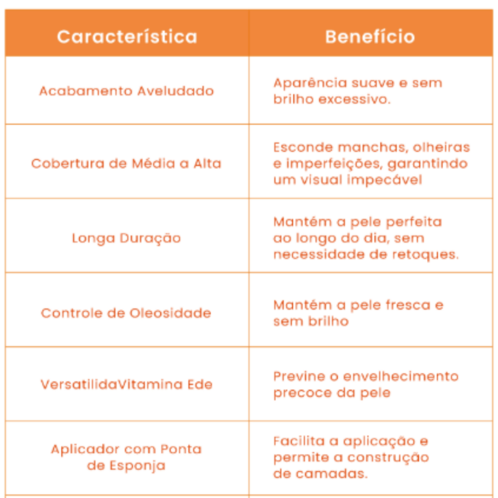 Descubra a perfeição com a Base e Corretivo Velvet Skin. Este produto inovador combina a função de base e corretivo, oferecendo um acabamento aveludado que proporciona uma cobertura de média a alta, ideal para esconder imperfeições e realçar a beleza natural da sua pele.