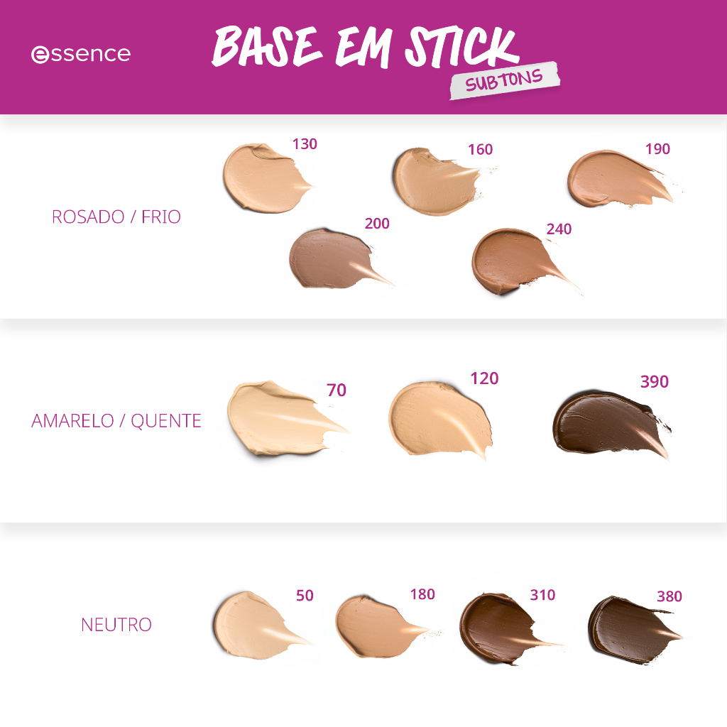✨ BASE EM STICK Praticidade e naturalidade para o seu dia a dia. A Base em Stick da essence possui formato compacto e funcional, ideal para aplicar com facilidade e levar na bolsa para retoques sempre que precisar. Sua textura cremosa desliza suavemente sobre a pele, proporcionando cobertura leve e construível, com acabamento natural e mate suave. Versátil, pode ser usada como base para uniformizar o tom da pele ou para contorno, valorizando os traços do rosto. Perfeita para quem busca rapidez na aplicação sem abrir mão de um acabamento bonito e confortável. 🎯 Formato em Stick Super prático de aplicar e fácil de transportar. 🌿 Acabamento Natural Efeito mate suave para um visual leve e uniforme. ✨ Cobertura Construível Leve, ideal para o dia a dia, com possibilidade de intensificar em camadas. 🎨 Multifuncional Pode ser usada como base ou para contorno. 💄 Aplicação Versátil Espalhe com os dedos, esponja ou pincel para um acabamento natural. 🌿 Sobre a Marca A essence é a marca nº 1 na Europa em unidades de cosméticos*, oferecendo qualidade com preço acessível. 100% livre de crueldade animal desde o início, com forte compromisso com produtos veganos. Acreditamos em uma beleza divertida, acessível e responsável. Para a essence, cada pessoa é única — o perfeito é ser você. *Marca de cosméticos em unidades.