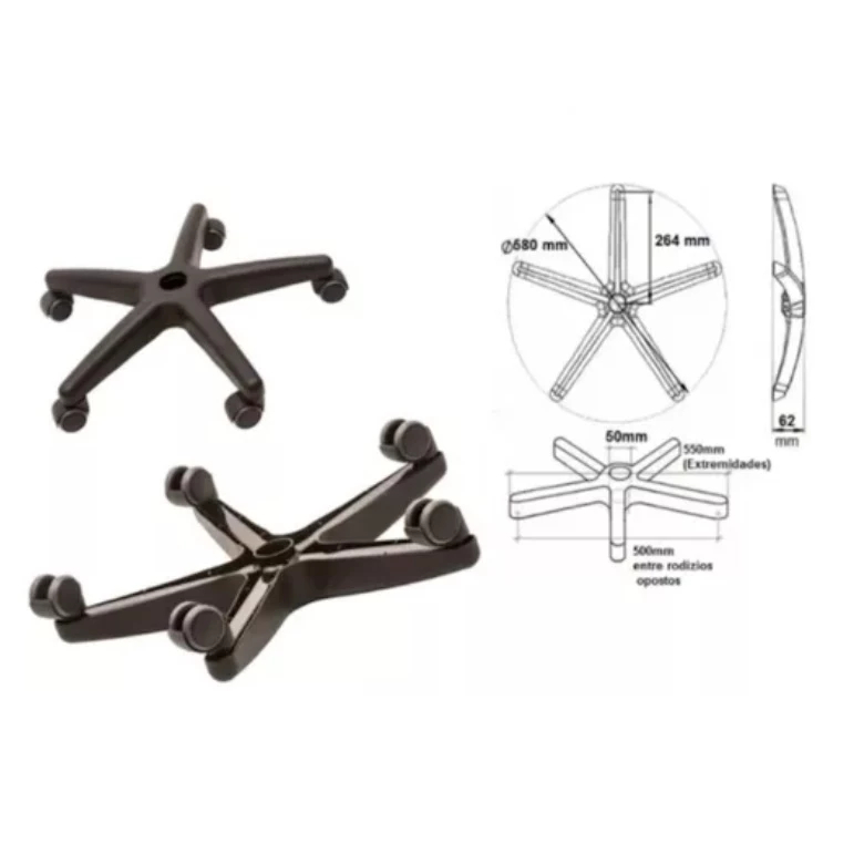 Base Estrela Giratória Aço Reforçada Cadeira Escritório Gamer Suporta Até 150kg + Rodízios Aço