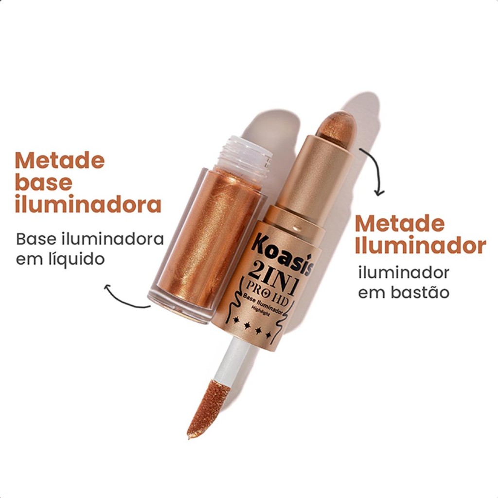 Base Iluminadora Efeito Glow Leve e Rápida Absorção - Koasis: Pele radiante com brilho natural A Base Iluminadora Koasis é perfeita para quem busca um efeito radiante e natural, sem adicionar cor ou cobertura. Sua fórmula contém partículas refletoras de luz que realçam a luminosidade natural da pele, criando um brilho sutil e sofisticado para um acabamento impecável. Ideal para todos os tipos de pele, ela proporciona aquele efeito "glow" saudável e uniforme que valoriza a beleza natural. Mais do que um simples produto de maquiagem, é um aliado para preparar a pele com luminosidade antes da aplicação de outros itens. Pode ser usada sozinha para um look leve e iluminado ou como primer para potencializar o efeito radiante da maquiagem. Sua textura leve e confortável garante aplicação suave e rápida absorção, sem deixar a pele oleosa. Versátil e fácil de usar, a Base Iluminadora Koasis é perfeita para o dia a dia ou ocasiões especiais. Disponível em duas maneiras de aplicação — bastão e líquida —, basta aplicar em todo o rosto, como uma base tradicional, para conquistar um brilho uniforme e duradouro. Um toque de sofisticação para quem deseja uma pele com viço e aparência saudável o dia todo. Especificações Marca: Koasis Modelo: Base Iluminadora Conteúdo: 8g Acabamento: Radiante com partículas refletoras de luz Indicação: Todos os tipos de pele Textura: Leve e de rápida absorção Formas de aplicação: Bastão e Líquida Benefícios: Realça a luminosidade, proporciona efeito glow, não adiciona cor ou cobertura, pode ser usada sozinha ou como primer Produto Hipoalergênico e Vegano Produto com certificação da Anvisa Composição Bastão: Isododecano, Poliisobuteno Hidrogenado, Copolímero de Estireno Hidrogenado/Isopreno, Salicilato de Butiloctia, Octildodecanol, Trimetilsiloxissilicato, Fenoxietanol, Etilhexilglicerina, Perfume, Fluorflogopita Sintetica, Mica, Corantes. Composição Líquido: Palmitato de Etilexila, Parafina, Trimelitato de Tridelicia, Óleo Minera, Polietileno, Cera Microcristalina, Fenoxietanol, Acetato de Tocoferila, Acido Pollidroxiestearico, Etilhexilglicerina, Perfume, MicaFluorlogopita Sintética, corantes.
