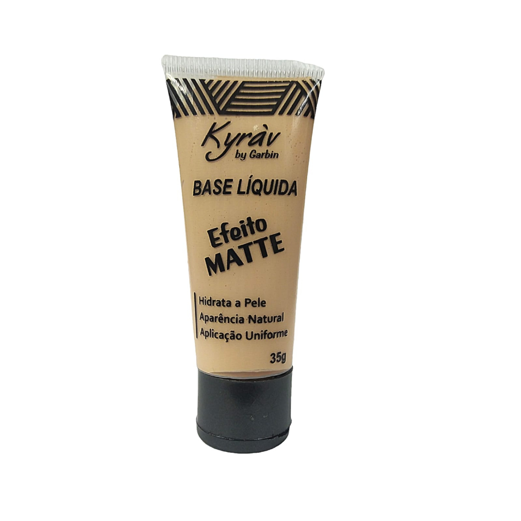 CORES 1 E 2 ESTÃO EM OFERTA POR CONTA DA VALIDADE 06/2026 Base líquida efeito matte Kyráv Aparência natural e uniforme. Dimensões do produto (unitário): 4,5cm de largura/ 10cm de altura Base liquida efeito Matte hidrata , deixa aparência natural aplicação uniforme 1 Unidade A Base é cobertura leve