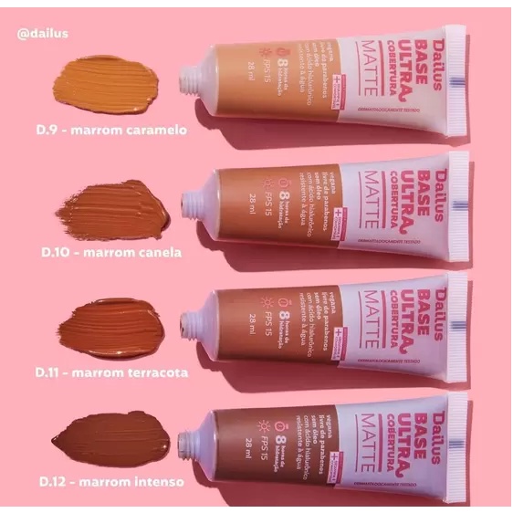 | Base Líquida Dailus Ultra Cobertura Fps15 Escolha Seu Tom este produto | R$ 37,99 | — | 4.9/5 | — |
