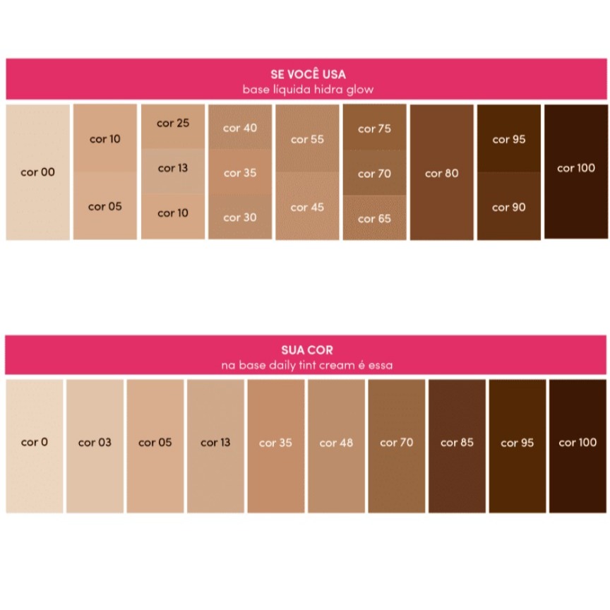 Base Líquida Daily Tint Cream Niina Secrets Cor 0 25ml A Base Líquida Daily Tint Cream Niina Secrets é o tratamento diário 24h na primeira etapa da make que vai deixar a sua pele radiante! Com 11 benefícios em 1 só produto, é uma base protetora multifuncional indispensável para levar naquele kit maquiagem que sempre te acompanha: Matifica 1. Acabamento matte, com efeito segunda pele; 2. Fórmula leve e respirável; 3. Cobertura média com camadas construíveis para deixar o acabamento do seu jeito; 4. Longa Duração; 5. Uniformiza o tom de pele, camuflando olheiras e vermelhidões sem marcar as linhas de expressão; Protege 6. FPS 30 UVA++; 7. Proteção contra a luz azul; Trata 8. Hidrata por até 24 horas 9. Controla a oleosidade; 10. Exclusiva tecnologia Secrets 2.0: Ácido hialurônico, Óleo de rosas e Vitaminas (B5, E e F), que nutrem a pele, possuem ação antioxidante e auxiliam na formação de colágeno; Niacinamida, que ajuda na prevenção da acne e melhora a aparência da pele acnéica. 11. Não-comedogênica e não-acnegênica. A cor 00 é uma base de intensidade de cor muito clara que faz parte das 12 cores da linha para combinar com os diversos tons de pele, sendo uma ótima opção de base para a pele branca. Escolha a sua cor e conquiste o efeito desejado!