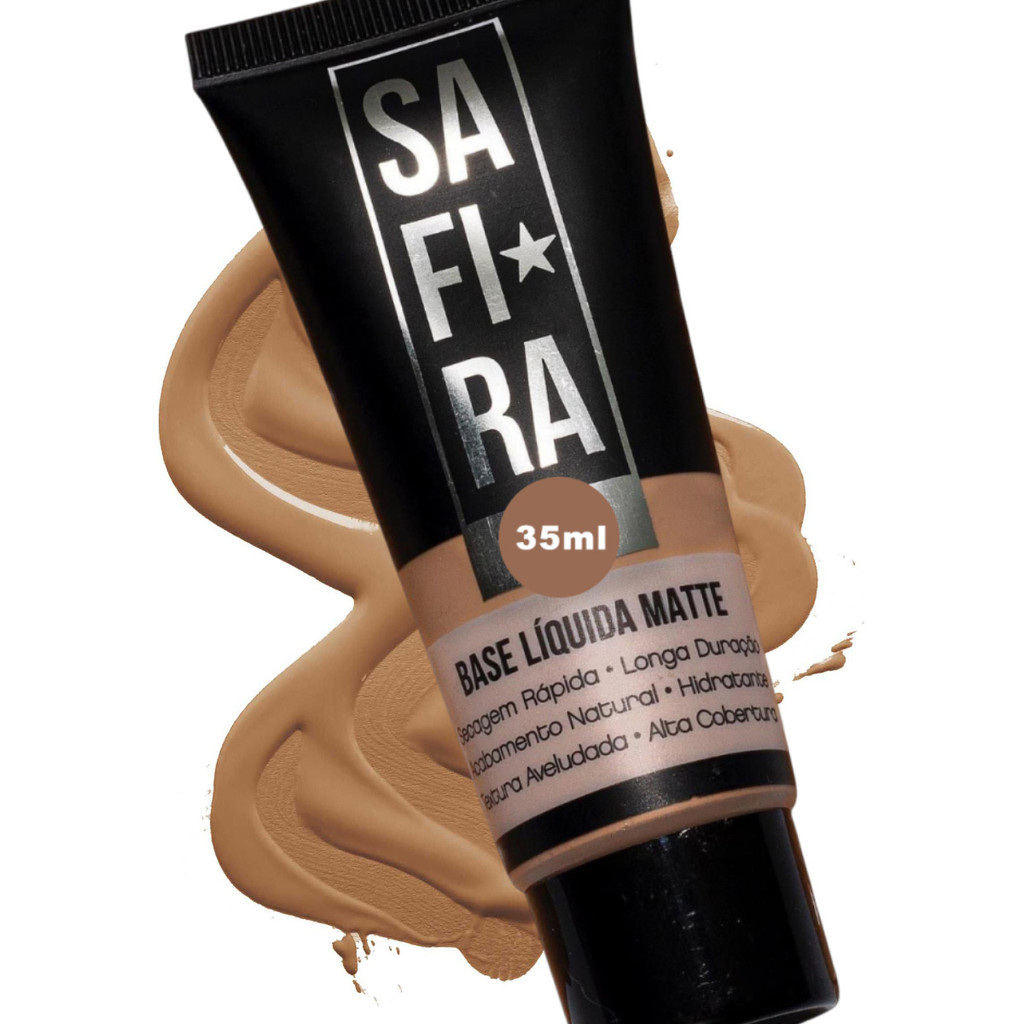 BASE LÍQUIDA MATTE - SAFIRA A base Safira é perfeita para cobrir imperfeições e criar uma tela em branco para a maquiagem. Ela é um item essencial na sua rotina de make, pois ajuda a preparar a pele para receber os demais produtos de maquiagem, além de proporcionar uma aparência mais suave e uniforme - aquele glow que a gente AMA! Outra importância da base é que ela ajuda a prolongar a duração da maquiagem, mantendo a pele com aparência linda e natural por mais tempo. DICA SOBRE BASE: É importante escolher a base adequada para o seu tipo e tom de pele para obter um resultado natural e uniforme. Uma base mal escolhida pode criar um efeito artificial e desfavorecer a aparência da pele. Por isso, é importante testar a base antes de comprá-la, experimentando a cor e a textura no rosto para verificar se é adequada para a sua pele. Por que usar a base Safira? - Secagem rápida. - Longa Duração. - Acabamento natural. - Hidrata. - Textura Aveludada. - Alta Cobertura. - Efeito Matte. ESPECIFICAÇÕES DO PRODUTO Cor: 6 tons Quantidade de Produto: 35ml
