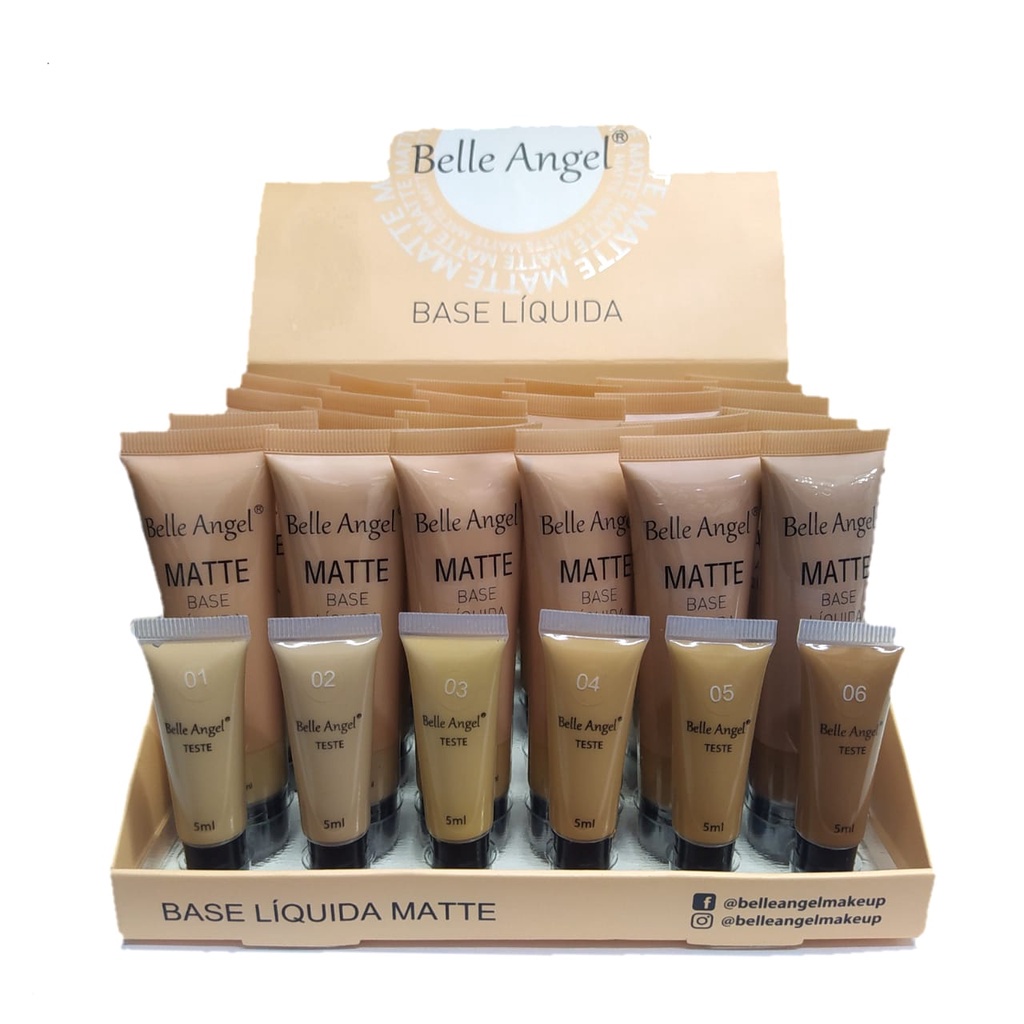 A nova base da belle angel veio em tamanho menor para facilitar nosso dia a dia, cabe em qualquer lugar sem fazer volume, sua cobertura é incrível, deixa um efeito porcelana, cobrindo poros e imperfeições, perfeito para qualquer tipo de make. podendo ser usado em qualquer tipo de pele. Cobertura incrível. Matte. Secagem rápida. V 05/27