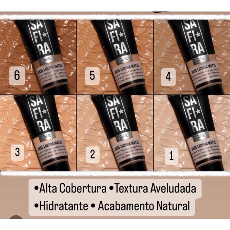 | Base Líquida Matte SAFIRA cor 5 este produto | R$ 21,99 | — | 4.9/5 | 1 |