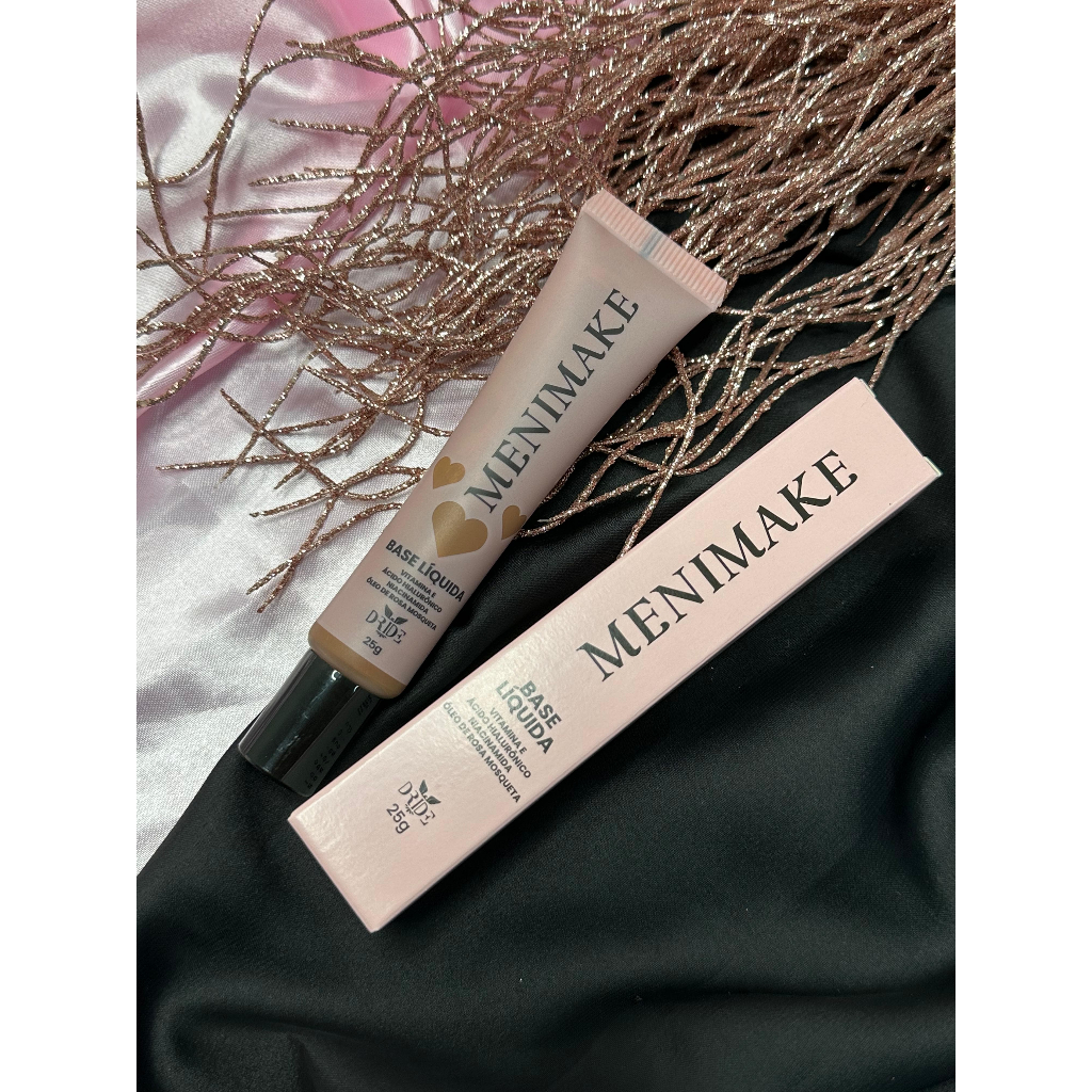 Menimake: Nova base líquida com vitamina E, ácido hialurônico, niacinamida e óleo de rosa mosqueta. Vegana, não testada em animais, livre de parabenos e petrolatos, e resistente à água. Sinta a diferença de uma pele radiante e saudável. Precisa de ajuda na escolha do tom certo? me chama no chat.