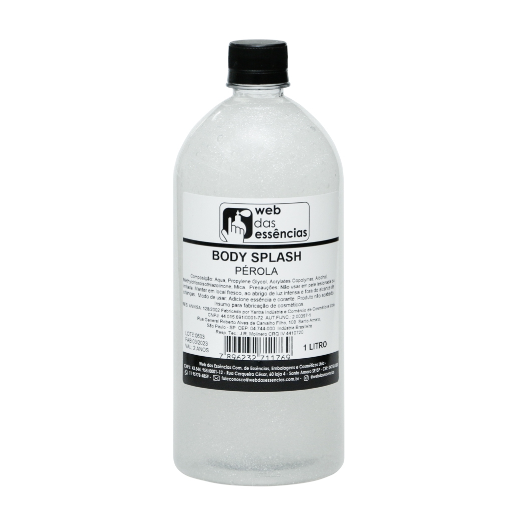 Base Body Splash Perolada Neutra Yantra - 1 litro. A base de body splash perolado iluminador é um produto cosmético desenvolvido para adicionar brilho sutil e um toque de luminosidade à pele. Este tipo de produto combina as características refrescantes e perfumadas de um body splash com a adição de pérolas ou pigmentos iluminadores, criando um efeito de brilho suave e radiante quando aplicado sobre a pele. Este produto pode ser aplicado em todo o corpo, o deixando iluminado e dando uma sensação de refrescância e hidratação ao mesmo tempo. Produto preparado com matérias primas selecionadas. Modo de usar: Colocar a base para Body splash em um recipiente e acrescentar de 10% de essência a sua escolha e misturar bem. Podendo adicionar corante cosmetico. - Produto em estoque - Envio imediato - Compra 100% segura e com garantia - Suporte como nosso time para tirar dúvidas Contém: 1 Frasco pet contendo 1 Litro do produto. Você está adquirindo um produto elaborado e fabricado dentro das normas e legislações da ANVISA. Foto meramente ilustrativa, podendo haver alterações.