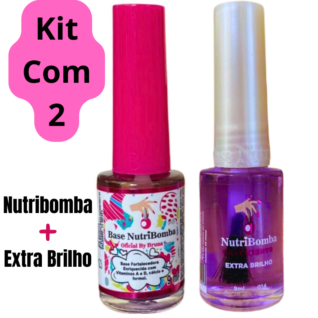 Base Nutribomba Fortalecedora + Extra Brilho Esmalte Finalizador PROMOÇÃO POR TEMPO LIMITADO OBS: "Contém Formaldeído" O Kit contém 01 Base Nutribomba + 01 Extra Brilho Finalizador "O kit irá potencializar ainda mais as suas unhas" Com esse Kit sua Unha estará além de protegida e fortalecida com a Base Nutribomba, agora terá junto o Extra Brilho que evita o amarelamento da Cor estende a duração do esmalte Benefícios: -Unhas mais Fortes -Auxilia o Crescimento das Unhas -Unhas Grandes e Saudáveis -Protege evitando o amarelamento das Unhas A BASE NUTRIBOMBA é uma Base Fortalecedora enriquecida com Vitaminas A E D Cálcio e Formol. Sua composição auxilia no crescimento das unhas mais fortes, ajudam a manter suas unhas saudáveis e bem cuidadas. Recomendada para quem tem unhas fracas, finas que descamam e não crescem Também recomendada para tratamento de fungos e micoses. EXTRA BRILHO O extra brilho da Nutribomba é indicado para quem deseja finalizar a esmaltação com um brilho a mais que só esse produto consegue te proporcionar. O extra brilho é capaz de proteger a cor do seu esmalte, aumentando a durabilidade da sua esmaltação, além de corrigir imperfeições na sua finalização. Um produto eficiente para deixar suas unhas ainda mais lindas. Produto não testado em animais. Modo de uso: -Agite o vidrinho antes de usar -Aplique camadas finas -Não encostar nas cutículas -Faça o tratamento passando a base 3x por semana -Não é recomendado para gestantes e menores de 18 anos -Se vc não quiser esmaltar, utilize uma camada de base comum por cima da base NutriBomba -Faça o tratamento passando a base 3x por semana . ATENÇÃO: A Base NutriBomba não deve ser passada nas cutículas e nem utilizada por Gestantes e pessoas alérgicas a esmaltes pois contém formol. Atenção! Todos os nossos Produtos são Originais fornecido pela própria marca By Bruna COTÉM: 01- Base Nutribomba 01- Extra Brilho Finalizador ENVIO IMEDIATO