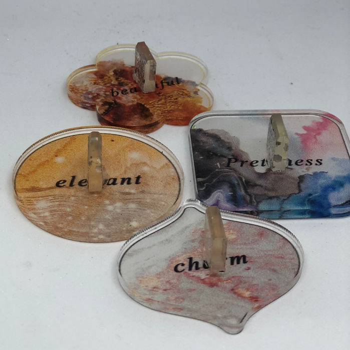 Mini peça de acrílico para decoração e fotos. Características: - Ótimo utensílio para as fotos das nails e para dar de mimo para as clientes. - Tamanho pequeno. - Estampado. As cores são enviadas de forma aleatória e conforme a disponibilidade em estoque.