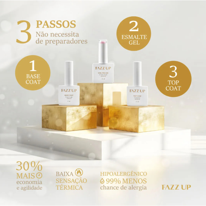 Dispensa Preparadores. O Base Rubber Fazz Up é uma base de construção desenvolvida especialmente para alongamento, fortalecimento e nivelamento das unhas. É um produto popular entre profissionais de manicure por sua versatilidade e capacidade de oferecer um acabamento duradouro e resistente. Principais características: 1 - Textura elástica (rubber): Proporciona flexibilidade, ideal para quem tem unhas frágeis ou que lascam facilmente. 2 - Nivelamento e correção: Pode ser usada para corrigir imperfeições na superfície das unhas. 3 - Fortalecimento: Cria uma base robusta, ajudando a prevenir a quebra das unhas naturais. 4 - Compatibilidade: Funciona como base para esmaltes em gel e esmaltes tradicionais. 5 - Alongamento leve: Possibilita um pequeno alongamento das unhas naturais (em casos de até 1-2 mm). Como usar: 1 - Prepare as unhas limpando, polindo e removendo cutículas. 2 - Aplique uma camada fina da Base Rubber Fazz Up. 3 - Catalise em cabine UV/LED pelo tempo indicado no produto. 4 - Adicione camadas extras, se necessário, para nivelar ou alongar. 5 - Finalize com o esmalte ou top coat de sua escolha. Esse tipo de base é ideal tanto para uso profissional quanto para quem busca mais resistência nas unhas. Caso precise de mais informações ou dicas de uso, estou aqui para ajudar!