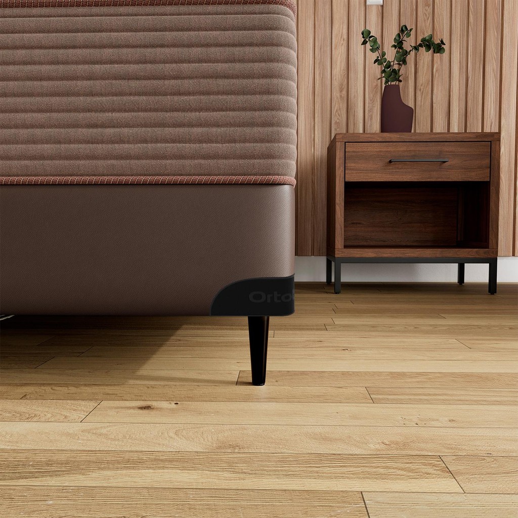 Base Sommier Corino Marrom Casal (138x188x23) Revestida em Corino A Base Sommier Ortobom revestida em Corino combina modernidade, acabamento elegante e facilidade de limpeza, valorizando qualquer ambiente. Sua estrutura é composta em madeira 100% de reflorestamento,reforçando o compromisso da Ortobom com a sustentabilidade e o uso responsável dos recursos naturais, além de espuma de poliuretano que garante resistência, firmeza e durabilidade, suportando pessoas de até 150 kg por lado (além do peso do colchão). Com altura total de 36 cm (23 cm da base + 13 cm dos pés), oferece a elevação perfeita para o seu colchão. Acompanha jogo de pés e conta com tratamento antialérgico e antiácaro, mantendo o ambiente de sono mais saudável. Com design sofisticado e acabamento de qualidade, é a base que completa o conforto e o estilo do seu colchão Ortobom.