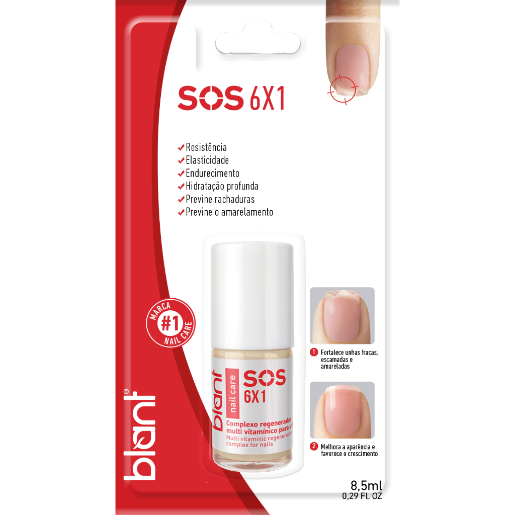 💅 Blant SOS 6x1 – Tratamento Fortalecedor com Hidratação Multivitamínica! A SOS 6x1 é uma base de tratamento hipoalergênica desenvolvida para recuperar unhas fracas, ressecadas e sem brilho. Enriquecida com complexo multivitamínico ultra hidratante ela entrega um cuidado completo em uma única fórmula, oferecendo fortalecimento profundo e nutrição intensa desde as primeiras aplicações. Sua ação multifuncional ajuda a renovar a estrutura da unha, deixar mais resistente, hidratada e com aparência saudável, além de proteger contra descamação e quebra. Ideal para quem busca um resultado rápido e eficaz no dia a dia! ✨ Benefícios do SOS 6x1: 💪 Fortalecimento intensivo 💧 Hidratação ultra profunda com multivitaminas 🌱 Hipoalergênica – ideal para unhas e peles sensíveis 🛡️ Reduz quebra e descamação ✨ Devolve brilho e aparência saudável 🎨 Pode ser usada como base antes do esmalte Ideal para quem: ✔ Tem unhas fracas, sensíveis ou quebradiças ✔ Quer hidratação + vitamina + tratamento em 1 só produto ✔ Busca resultados rápidos e eficazes