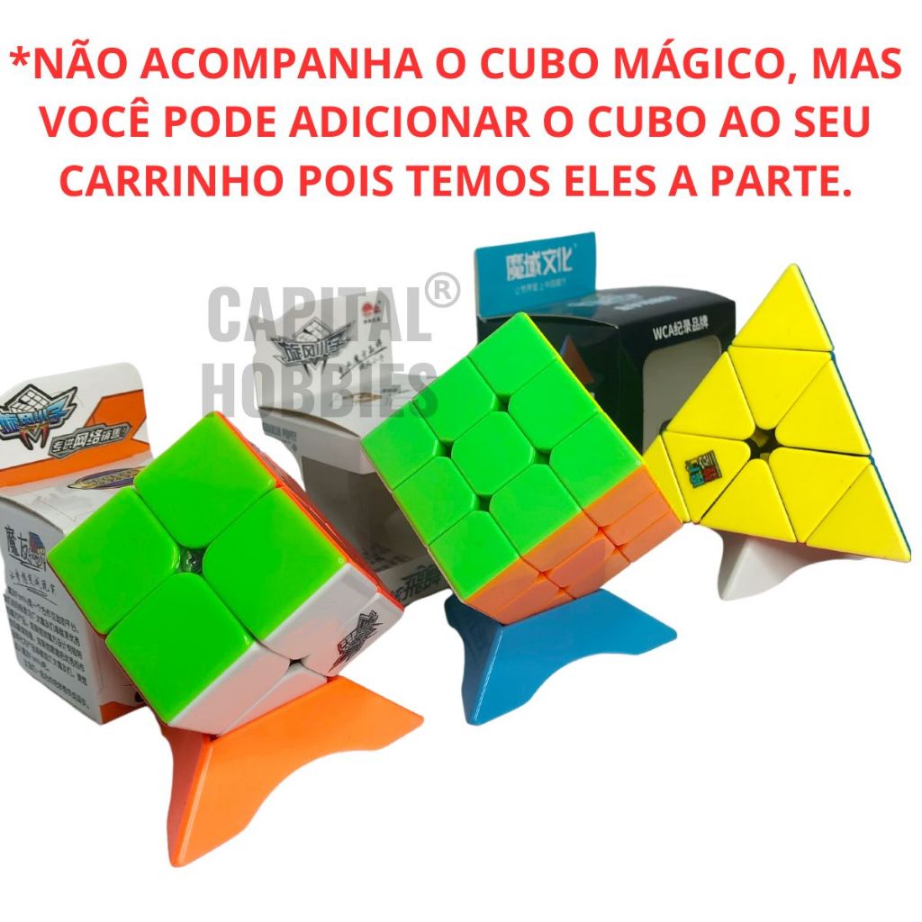 PRODUTO NOVO COM NOTA FISCAL ENVIO EM NO MÁXIMO 24H ÚTEIS! Ideais para apoiar os mais variados modelos de cubos mágicos. Fica bastante elegante na prateleira, mesa de centro, estantes, mesa de escritório etc.. NÃO ACOMPANHA O CUBO MÁGICO, Mas temos os cubos para venda em nossa loja, basta adicionar o produto no seu carrinho ! Especificações: -Material: ABS(Plástico de alta qualidade, não-tóxico e resistente ao uso.) -Tamanho : 75mm x 75mm x 75mm Segue no pacote: kit com 10 ou 20 bases nas cores que vc escolher na variação, ou em cor aleatória ( algumas cores nessa opção : cor aleatória, podem repetir)