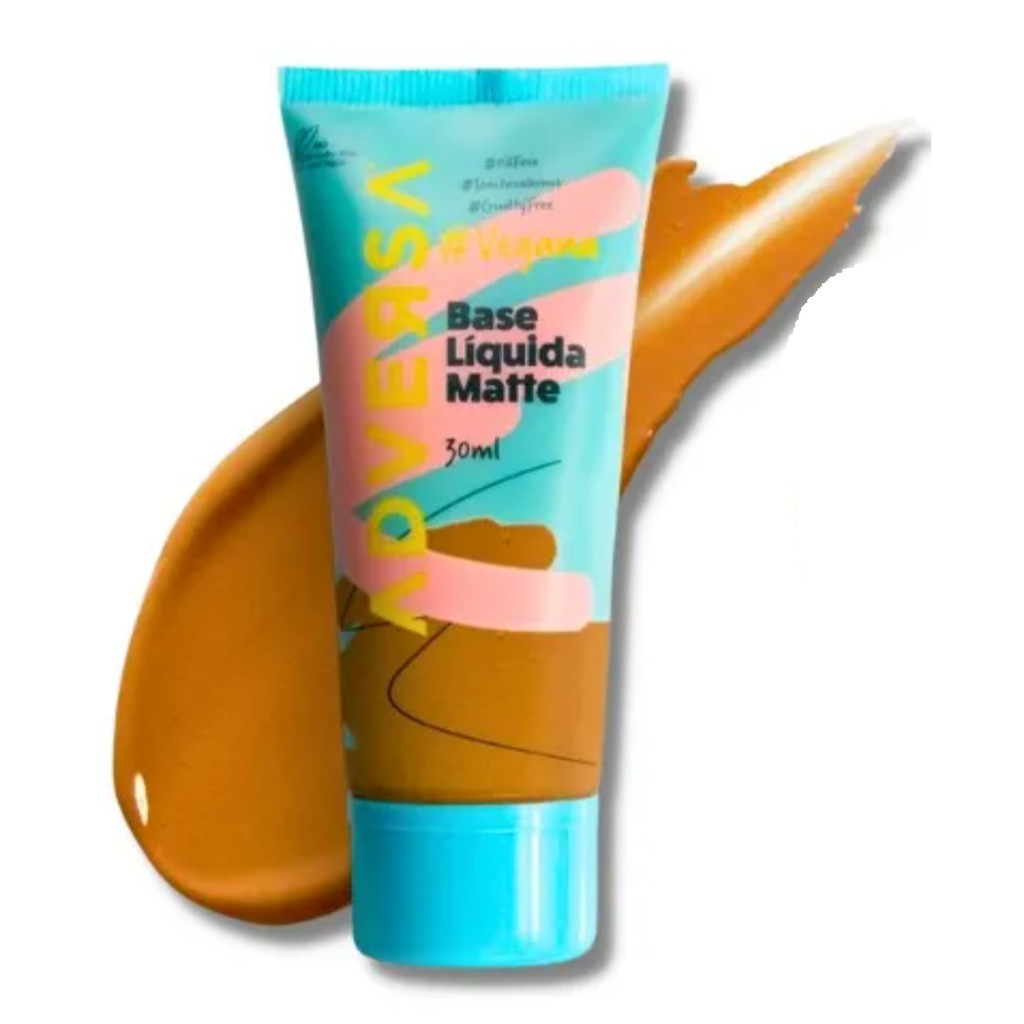 Contem - 1 Unidade,25g O BASE LÍQUIDA MATTE VEGANA ADVERSA,A Base Líquida Matte Vegana da Adversa possui uma fórmula incrível que permite a construção de camadas e sendo assim, é possível conseguir desde um acabamento super leve e natural, até uma alta cobertura. Além disso, é super fácil de aplicar, confortável de usar, não pesa no resultado e não acumula nas linhas de expressão. Produto vegano, não testado em animais.