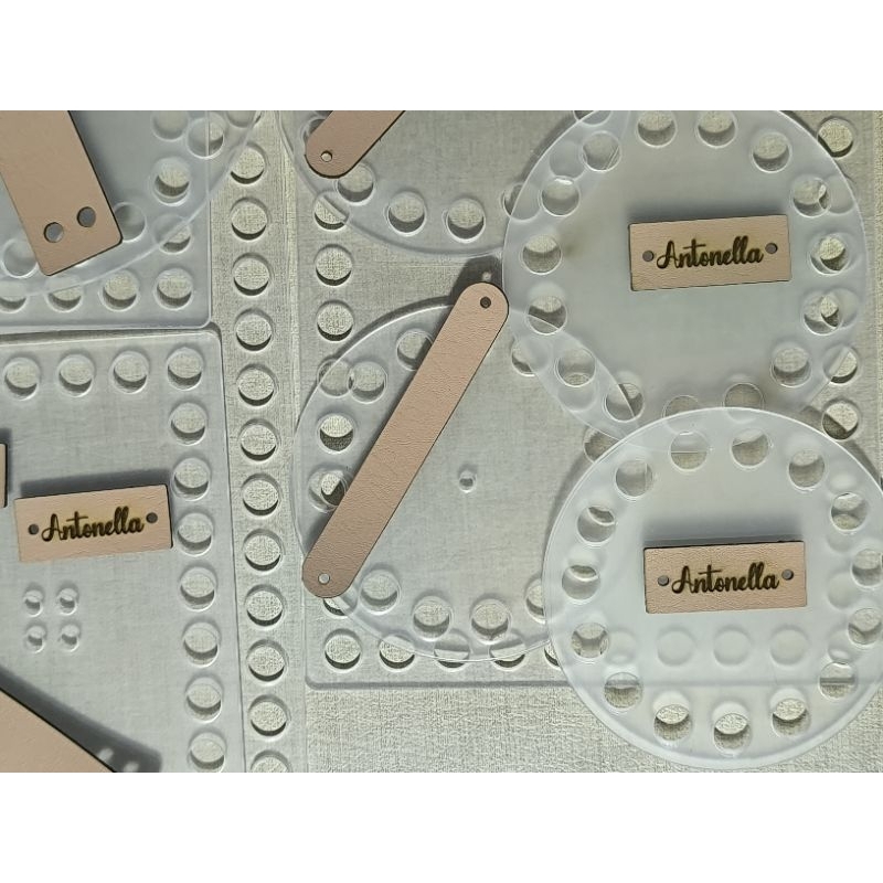Bases de acrílico 2mm mais etiquetas e alça para farmacinha de crochê