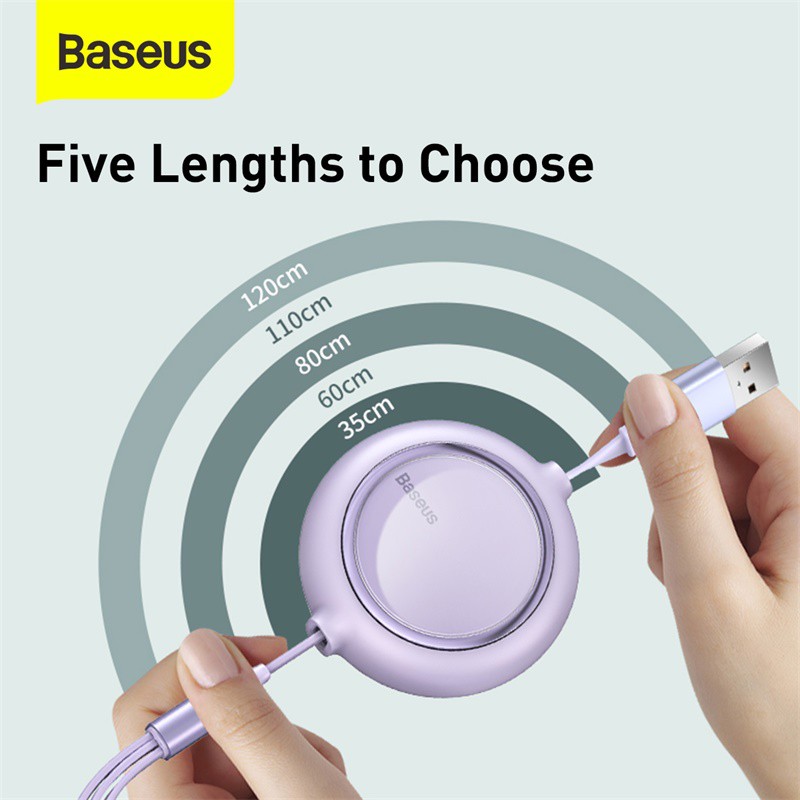 Baseus 3 in 1 3.5A Retractable Fast Charging Cable With Micro +Type C+Lighting Support Data Transmission