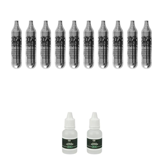 Produto de uso exclusivo em práticas esportivas. O uso do produto exige treinamento e equilíbrio emocional. Deverá ser guardado em lugar seguro e fora do alcance de terceiros. Os produtos aqui listados servem apenas para uso recreativo, ou seja ***NÃO*** letal. ESPECIFICAÇÕES TÉCNICAS DO CO2: Esse é um Cilindro de Co2 puro, sem óleo ou contaminantes, produzido por Leão Modelismo, marca que cada vez mais vem ganhando espaço no Brasil por produzir produtos de excelente qualidade. Essa cápsula descartável de 12g não possui rosca. Produto muito usado em armas com funcionamento por Co2. - Marca: Leão Modelismo - Conteúdo: Gás Co2 - Peso: 12 gramas - Encaixe: 3/8" - Não possui rosca - Não reutilizável (descartável) - Diâmetro do cilindro: 1,8cm - Comprimento do cilindro: 8,2cm - Peso bruto: 43 gramas ESPECIFICAÇÕES TÉCNICAS DO ÓLEO: Esse é um ÓLEO DE SILICONE produzido pela AR15 SPORT, indicado principalmente para uso em equipamentos de AIRSOFT e AIRGUN, ele manterá sua arma sempre lubrificada e pronta para trabalhar em seu melhor desempenho. Modo de usar: Gotejar no local indicado conforme instruções do manual de cada arma. - Marca: AR15 SPORT - Quantidade: 15ml - Composição: 100% Silicone - Diâmetro x comprimento da embalagem: 26,3mm x 70,6mm - Peso da embalagem: 22 gramas ITENS INCLUSOS: - 10 Cilindros Co2 Leão Modelismo Sem Rosca 12g (cada) - 02 Óleos de Silicone AR15 SPORT 15ml (cada) INFORMAÇÃO: Os equipamentos, peças e acessórios aqui listados são de uso exclusivo em armas de pressão (gás comprimido ou mola), airsoft, paintball, esferas plásticas (BBS) e estão em conformidade com a legislação brasileira de USO PERMITIDO "É permitido o uso de armas de pressão por ação de gás comprimido ou por ação de mola, com calibre igual ou inferior a seis milímetros (6mm ou 6.0mm), e das que lançam esferas de plástico com tinta, como os lançadores de paintball." Conforme parágrafo único do Art. 11 do DECRETO Nº 11.615, DE 21 DE JULHO DE 2023. A venda desses itens é feita somente para maiores de 18 anos mediante a comprovação de maior idade. Atenção: O envio de Armas de pressão e Airsoft é realizado somente por transportadora. Caso tenham dúvidas entrar em contato.