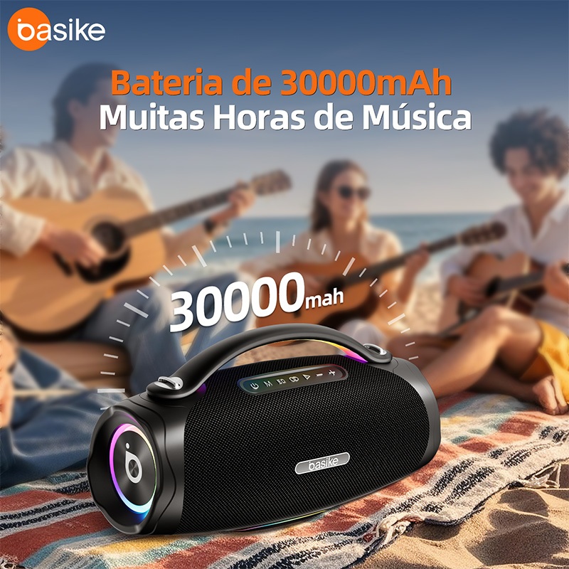👑 Bem-vindo à loja oficial Basike. Todos os produtos na loja são produtos originais Basike 🔥 Siga esta loja para desfrutar de uma oportunidade de 5% de desconto 🚚Em rela ção à entrega, iremos entregar entre 12-48 horas após a colocação do pedido ✨Sua satisfa ção é a nossa prioridade e a avaliação de 5 estrelas é aparecida 💢Dever-se notar que quaisque problemas de produto exigem um vídeo de unboxing para ser apresentado BASS POTENTE - Caixa de Som Bluetooth 200W com Iluminação Dinâmica Equipado com 2 drivers full-range de 3,6 polegadas de alta performance e chip DSP integrado, nosso sistema de processamento ultrarrápido garante graves profundos e som cristalino. Libere sua energia com ritmos intensos e uma experiência sonora imersiva! 🎵【Conexão TWS】Conecte 4 caixas para som estéreo surround e potência dupla 🎇【Iluminação inteligente】luz sincronizados com a batida da música 🎊【Efeitos visuais impactantes】Transforme qualquer ambiente em uma balada com padrões luminosos hipnóticos 💦【Resistência Comprovada (IPX6)】À prova de água (resistente a jatos de água potente),Proteção contra areia e quedas acidentais 🧱【Design de produto】Estrutura em ABS reforçado com grade metálica,Design compacto (4,17 kg) para levar em trilhas, praias ou piscinas 🔗【Bluetooth 5.3】Alcance estável de 10 metros e conexão instantânea,Entrada AUX 3,5 mm + USB para pen drives 🔋【Bateria 20.000 mAh】Até 8 horas de música contínua 🔌【Função emergência】Carregue celulares via porta USB 5V/2A Ficha Técnica Modelo: 200W Tipos de alto-falante:Caixa, Portátil, boomsbox Tipos de filtros do alto-falante:Alta, Portátil, bluetooth, potente Autonomia máxima da bateria:8 h Lugares de colocação:Festa, Parque, Praia, balada Tempo de carregamento:6 h Quantidade de caixas de som:4 Formato do alto-falante:Caixa Com luzes LED:Sim Potência: 200W RMS Frequência: 60Hz-18KHz Bateria: Lítio 20.000 mAh Tempo de Carga: 6 horas Dimensões: 44,7 x 18,9 x 23,8 cm Peso: 4,17 kg Bluetooth: Versão 5.3 Resistência: IPX6 (à prova de água e poeira) Modelo: 300W Versão Bluetooth: 5.3 Alto-falante: 190x140mm + 78x78mm x2 + 30x30mm x2 Resposta de frequência: 60Hz-18kHz Alcance sem fio: ≥12m Capacidade da bateria: 30.000mAh Porta de carregamento: Tipo C 5V/2A PD 30W Tempo de carregamento: ≤10 horas PD: 5 horas Tempo de reprodução: ≥9 horas (50% do volume) Dimensões: 496*216*269mm Peso: 6260g Conteúdo da Embalagem 1x Caixa de Som Basike 1x Cabo USB-C (carregamento) 1x Cabo AUX 3,5 mm 1x Manual em Português