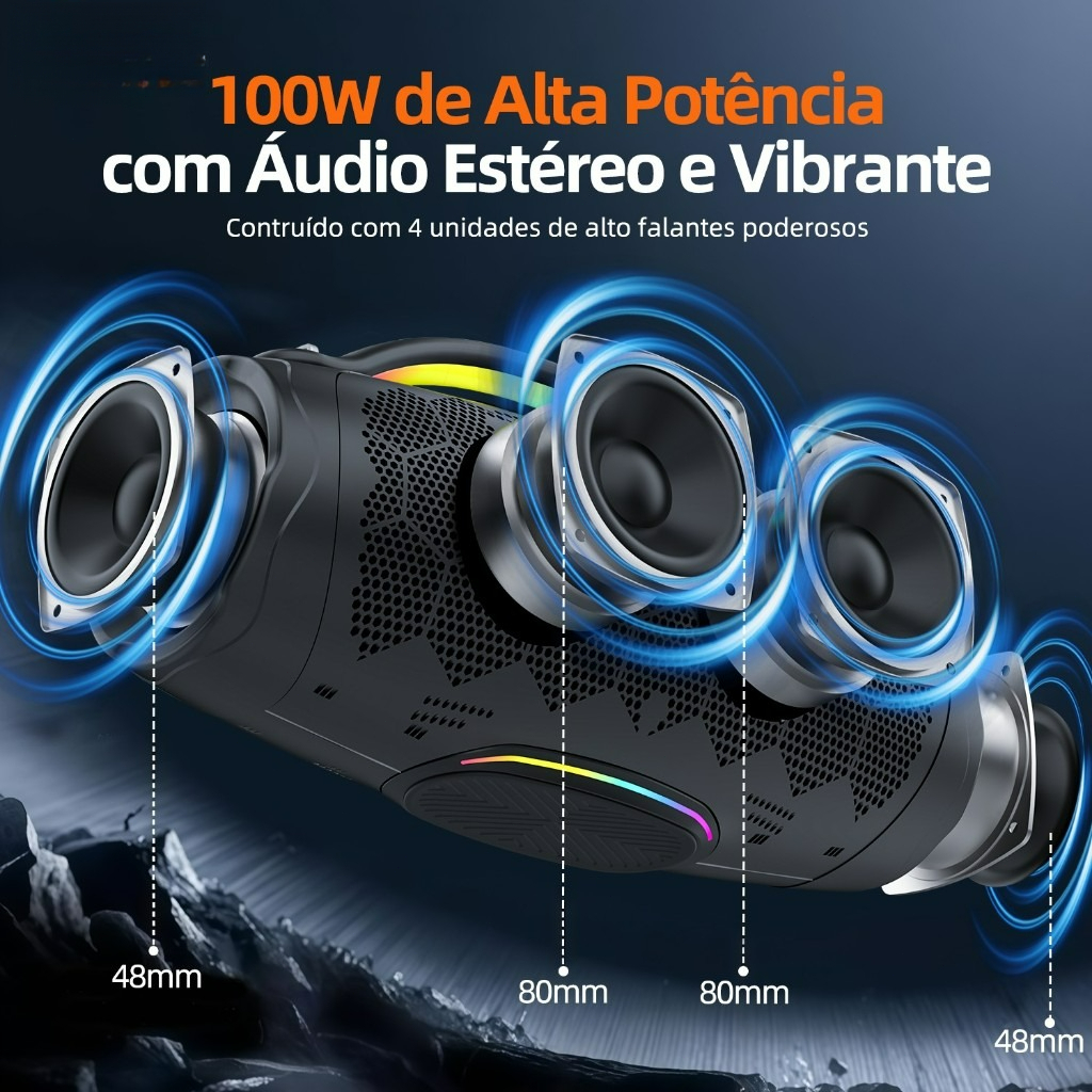 Basike caixa de som bluetooth grande 100W Boombox Plus 10H Portátil Subwoofer Com RGB IPX6 à prova d'água 360° Estéreo