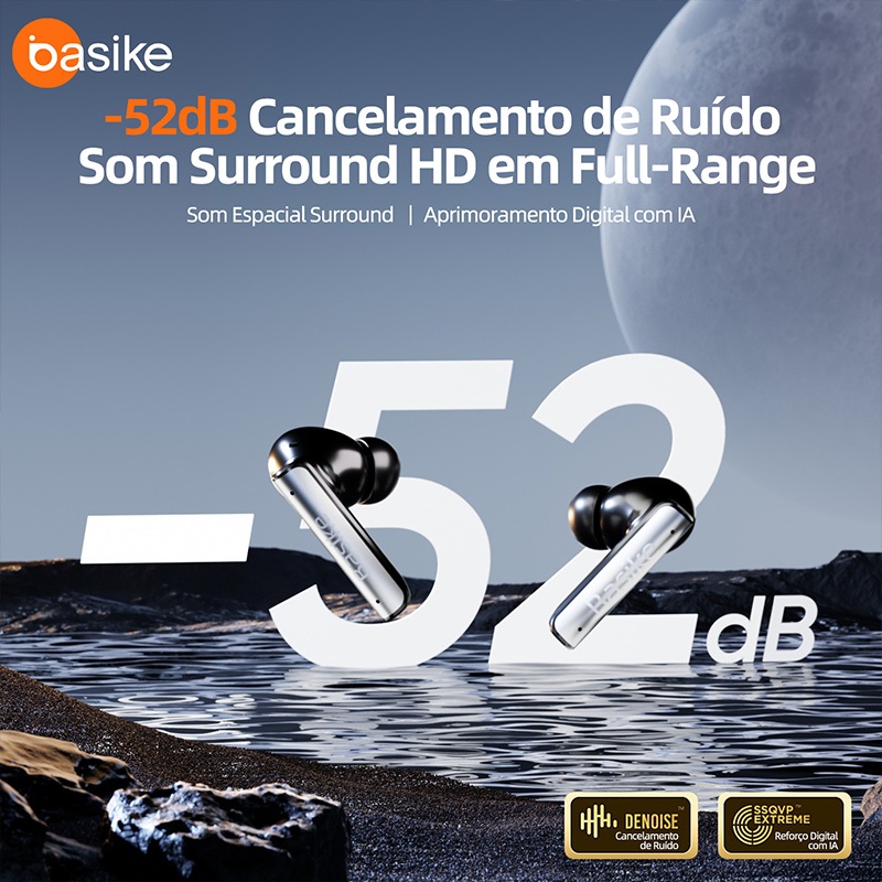 Basike Fones de Ouvido Bluetooth Sem Fio 40H,ANC&ENC Fones Com microfone e indicador de bateria,fon226