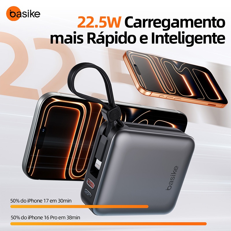 👑 Bem-vindo à loja oficial Basike. Todos os produtos na loja são produtos originais Basike 🔥 Siga esta loja para desfrutar de uma oportunidade de 5br de desconto 🚚Em rela ção à entrega, iremos entregar entre 12 horas após a colocação do pedido ✨Sua satisfa ção é a nossa prioridade e a avaliação de 5 estrelas é aparecida 💢Dever-se notar que quaisque problemas de produto exigem um vídeo de unboxing para ser apresentado ✅【Basike Mini Power Bank 22.5W com Carregamento Sem Fio】Nunca fique sem bateria com o nosso power bank portátil! Com 10000mAh de capacidade, ele é perfeito para carregar seu celular, iPhone, relógio ou fones de ouvido sem complicações. 😍 ✅【PD 22.5W Super Fast Charge & Wireless Charging】Carregue seu dispositivo em tempo recorde com a tecnologia PD 22.5W turbo! 🚀 Além disso, aproveite a conveniência do carregamento sem fio para maior praticidade. ✅【Cabo Integrado Removível + Tela Digital】Com um cabo plug-and-play destacável e tela digital que mostra a carga restante, você sempre sabe exatamente quanta energia ainda tem! 🔄 ✅【Design Mini e Portátil】Pequeno como metade da sua mão, este mini power bank é super fácil de carregar na bolsa ou no bolso. Seu estilo elegante e compacto combina com qualquer ocasião! ✨ ✅【Bateria Portátil 10000mAh Multiuso】Perfeito para viagens, trabalho ou dia a dia, este carregador portátil para iPhone e celulares garante que você nunca fique sem energia. 💪 ✨Especificações Técnicas Dimensões: 71,5 x 62 x 28 mm Material: PC + ABS Capacidade: 10000mAh (3,85V/38,5Wh) ✨Entrada/Saída: Capacidade Nominal: 6000mAh (5V/2A) Capacidade: 10000mAh 3,85V/38,5Wh Entrada Tipo-C: 5V/3A, 9V/2A (Máx. 18W) Saída Lightning: 5V/2,4A, 9V/2,22A, 12V/1,67A (PD Máx. 20W) Saída USB: 5V/3A, 9V/2A, 10V/2,24A (SCP), 12V/1,5A (Máx. 22,5W) Interface Tipo-C: 5V/3A, 9V/2,22A, 10V/2,25A (SCP), 12V/1,67A (PD20W/22,5W máx.) ✨Saída sem fio: Carregamento padrão: 5W, 7,5W, 10W, 15W Carregamento de relógio: 2,5W ✨Conteúdo da embalagem: Manual do usuário x1 Power Bank (carregador portátil) x1 #PowerBank #BateriaPortatil #CarregadorPortátilParaCelular #CarregadorPortátilParaiPhone #MiniVinho #PowerBank20000MahTurbo #Basike 🔥
