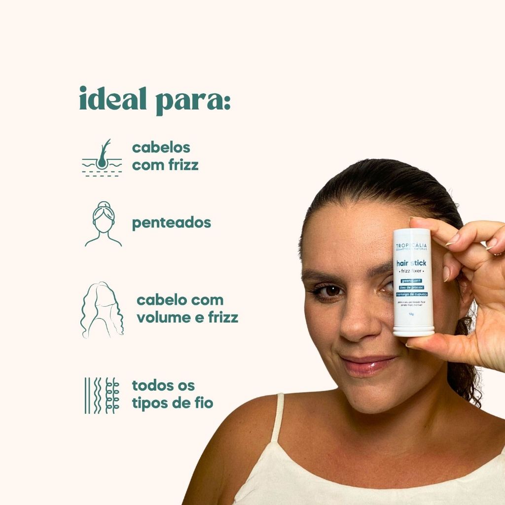 Bastão de Cera Modeladora Hairstick Anti-frizz de Cabelo Sem Resíduo - Tropicália Cosméticos 12g
